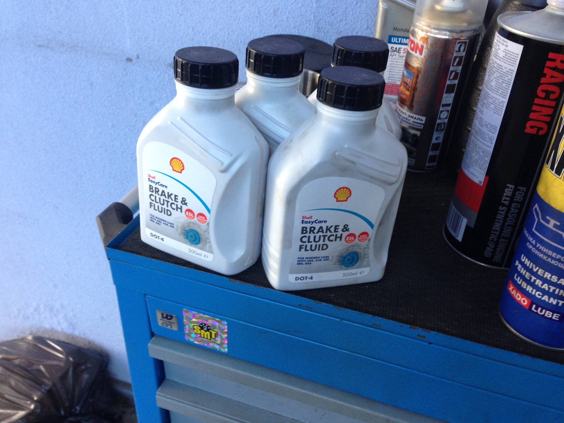 Параллельно решил сменить тормозную жидкость. Выбор пал на Shell DOT4, взял 2л жижки и прогнал через специальный аппарат, методом вытеснения.