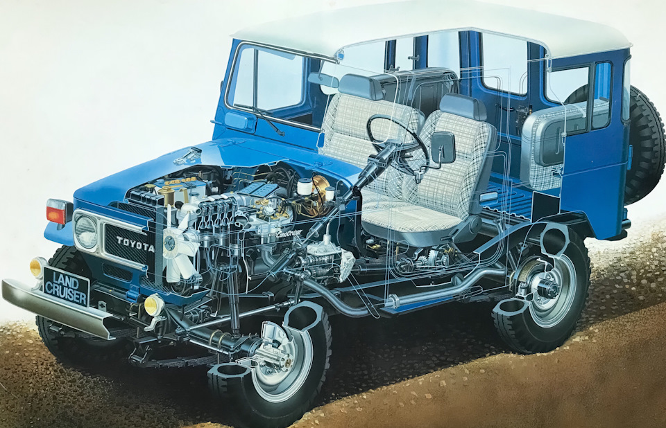 Нашёл редкую фотографию рентгена Land Cruiser 40. В разрезе можно получить представление об устройстве. А можно распечать и повесить на стену :)