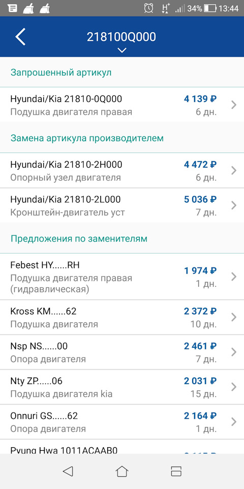 Летом покупал в Москве оригинал, цена была приятная — 2150 руб., артикул 21810 0Q000. На данный момент цена опоры в данной организации 2400 руб. ИМХО, нормально.