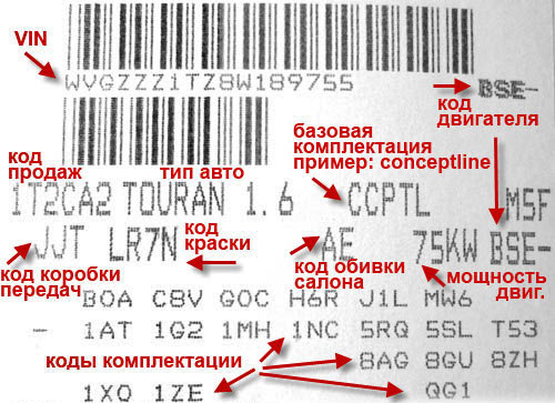 Расшифровку VIN кода автомобиля можно запросить у дилера, на табличке которая как правило находится в багажнике автомобиля и дублируется в сервисной книжке или найти самостоятельно в интернете. В интернете есть много сайтов позволяющие пробивать вин коды фольксваген и ауди, как правило 1-5 vin бесплатно, к примеру на drive.by/spare/etka/vin/