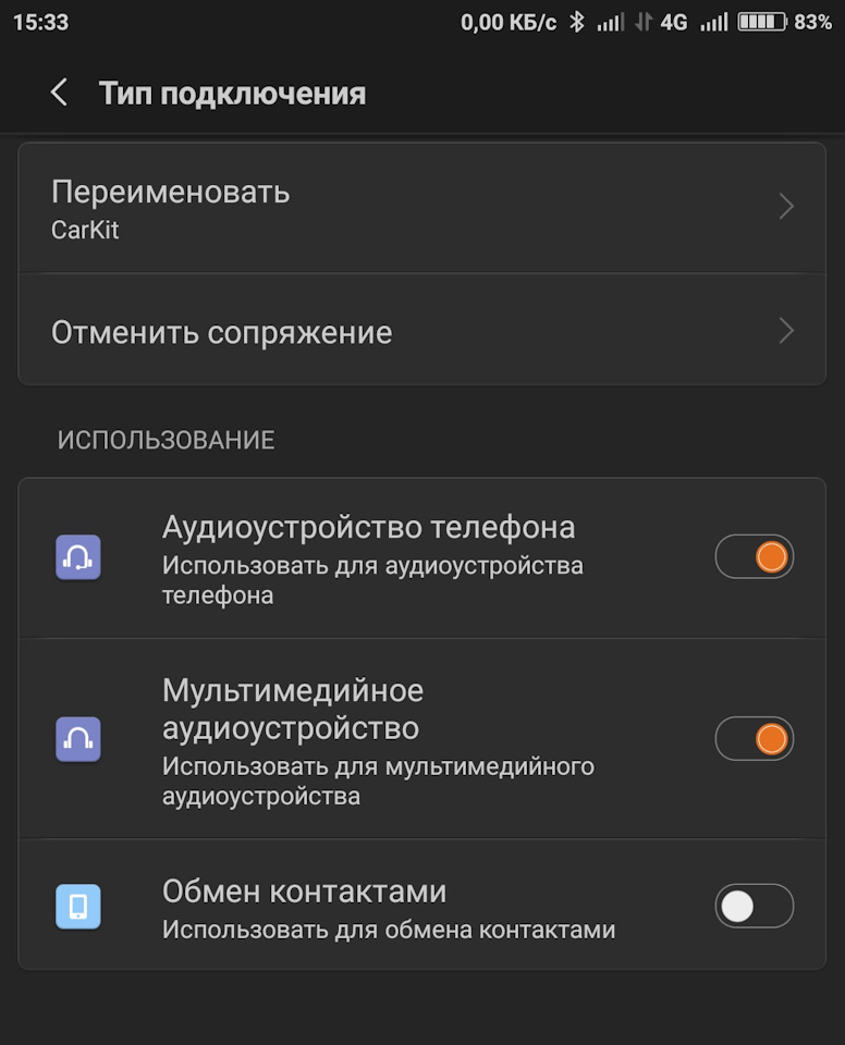 Если отключить первый ползунок, то по идее на магнитолу телефонный вызов не пойдет (разговаривать по телефону), при этом аудиплеер должен играть через магнитолу.