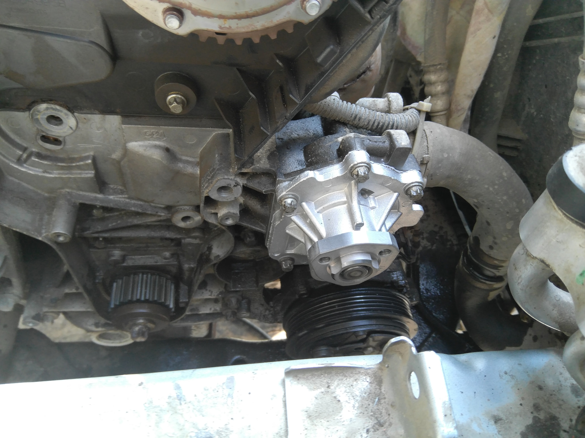 Наверное помпу можно было и не менять. Да и вы лучше не берите эту фирму. Стояла с металлической крыльчаткой, а новая с пластиковой. Моей печали не было предела. И когда шкив помпы будете откручивать, опустите машину, чтоб двигатель чуть поднялся, тогда можно нормально ключ вставить.
