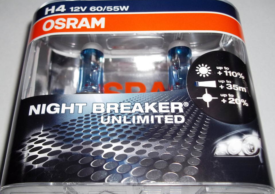 1. Те же Osram H4 Night Breaker Unlimited, 12V 55W, +110%, 2 шт, 64193NBU-DUOBOX;