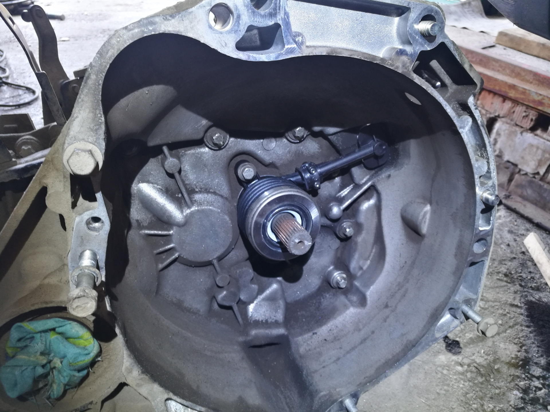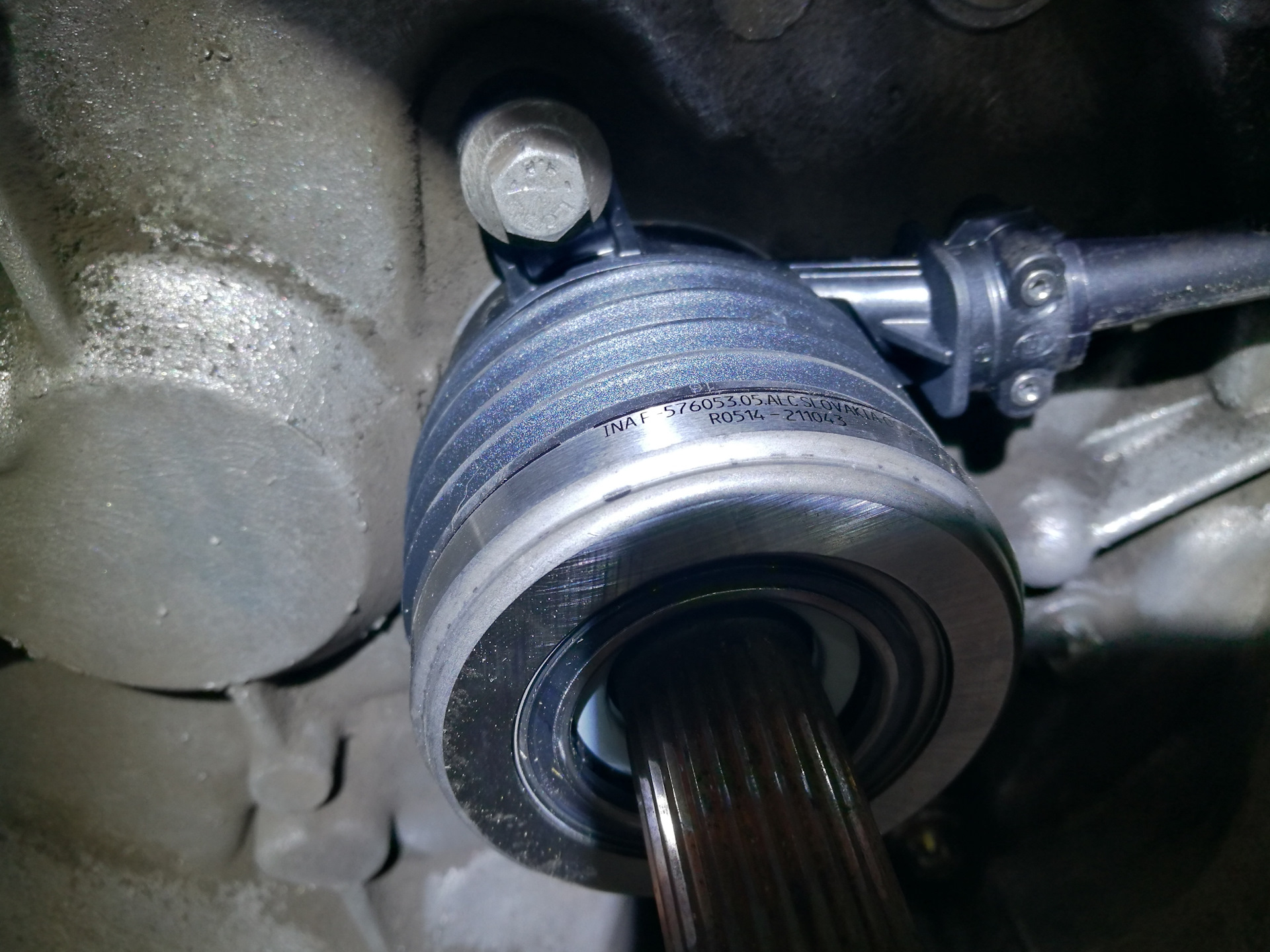 На кпп устанавливаем новый выжимной подшипник.