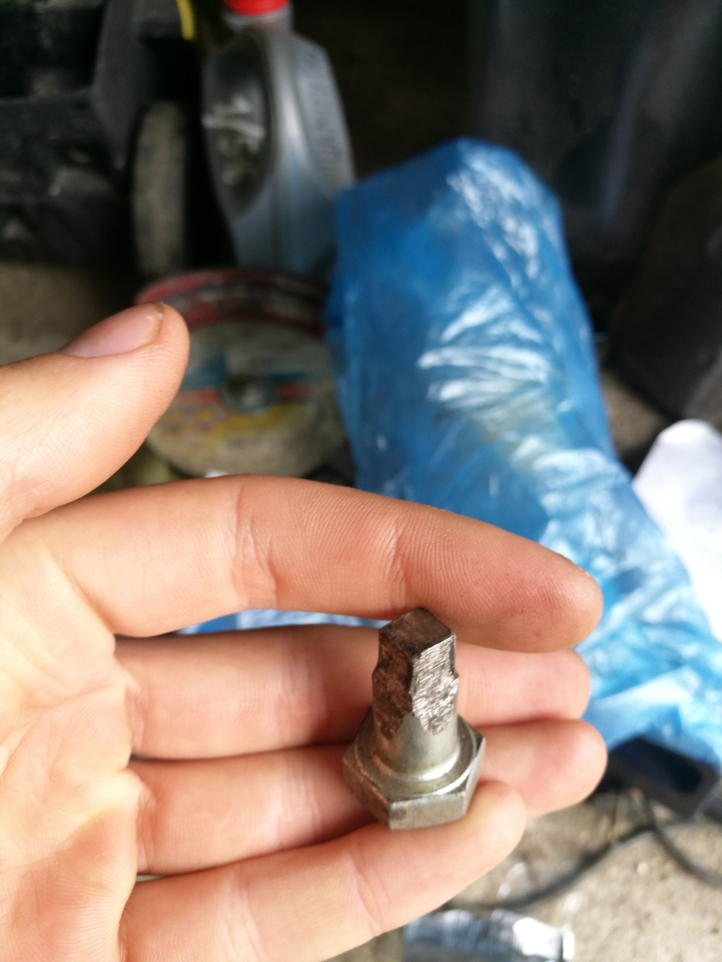 6) сливаем масло из КПП( болт там необычный, 4ёх гранный. Я выточил на наждаке переходник из обычного болта м10.