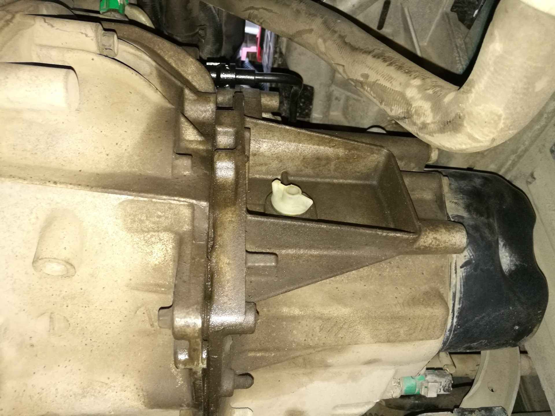 4) откручиваем датчик коленвала(установлен практически на стыке кпп и двигателя) и снимаем разъем с датчика заднего хода(установлен практически снизу, ближе к левому колесу)