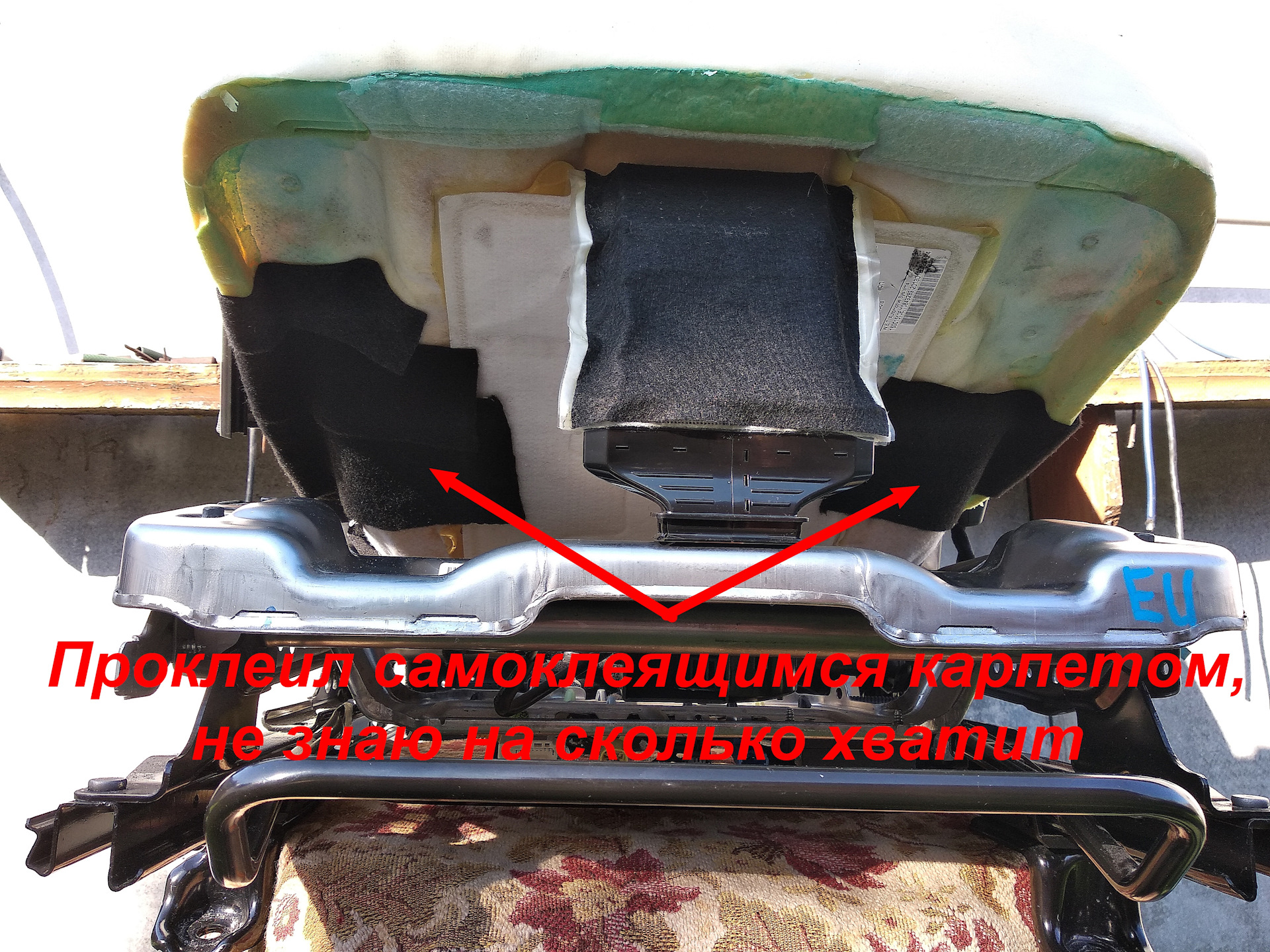 А ППУ проклеил самоклеящимся карпетом, дется ему всё равно некуда, поскольку с боку он прижат кожаной обивкой, а снизу лежит на сетке, ну сколько продержится, посмотрим .