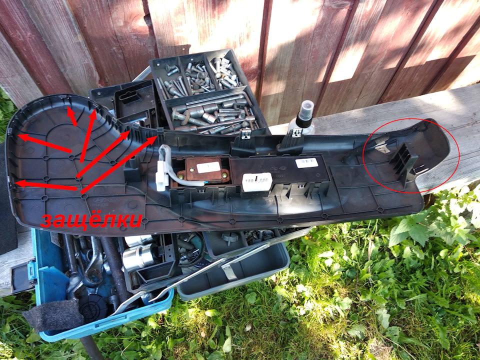 Нет ни каких секретов, всё на защёлках, но разбирать надо с заду, спереди она одета как нитка в иголку, вот тут можно сломать