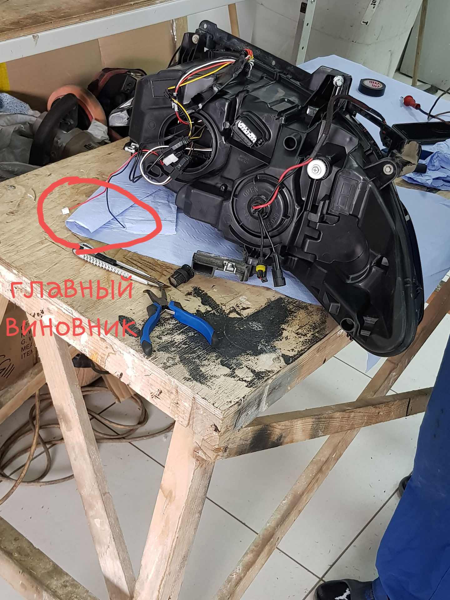 Как выдалось свободное время, поехал в сервис устанавливать. Старые фары скинули, поставили новые и тут началось веселье. Машина наотрез отказалась принимать новую оптику, требуется перепрошивка. Сказал оставляйте так, собираем машину и буду думать на счет прошивки. Позвонил Андрею (PasserSPB) с данной проблемой и уже вечером этого же дня был у него. Фары заработали, но частый звук поворотника (похож на тот, когда перегорают лампочки) к сожалению исправить не удалось. На следующий день снова поехал в сервис уже с другими работами, но заодно решили еще раз проверить фары и как оказалось не зря, в первый день после прошивки не заметил, что не работает секция дальнего диодного света на одной из фар, принял решение скидывать фару и проверять все защелки, что есть внутри фары. Выяснили, что контакты плохо вставлены в зажимы, а один из зажимов вообще не соответствует защелке в которую он вставляется (меньше). В итоге поджали, подпаяли провода, и проблема с дальним светом была решена.
