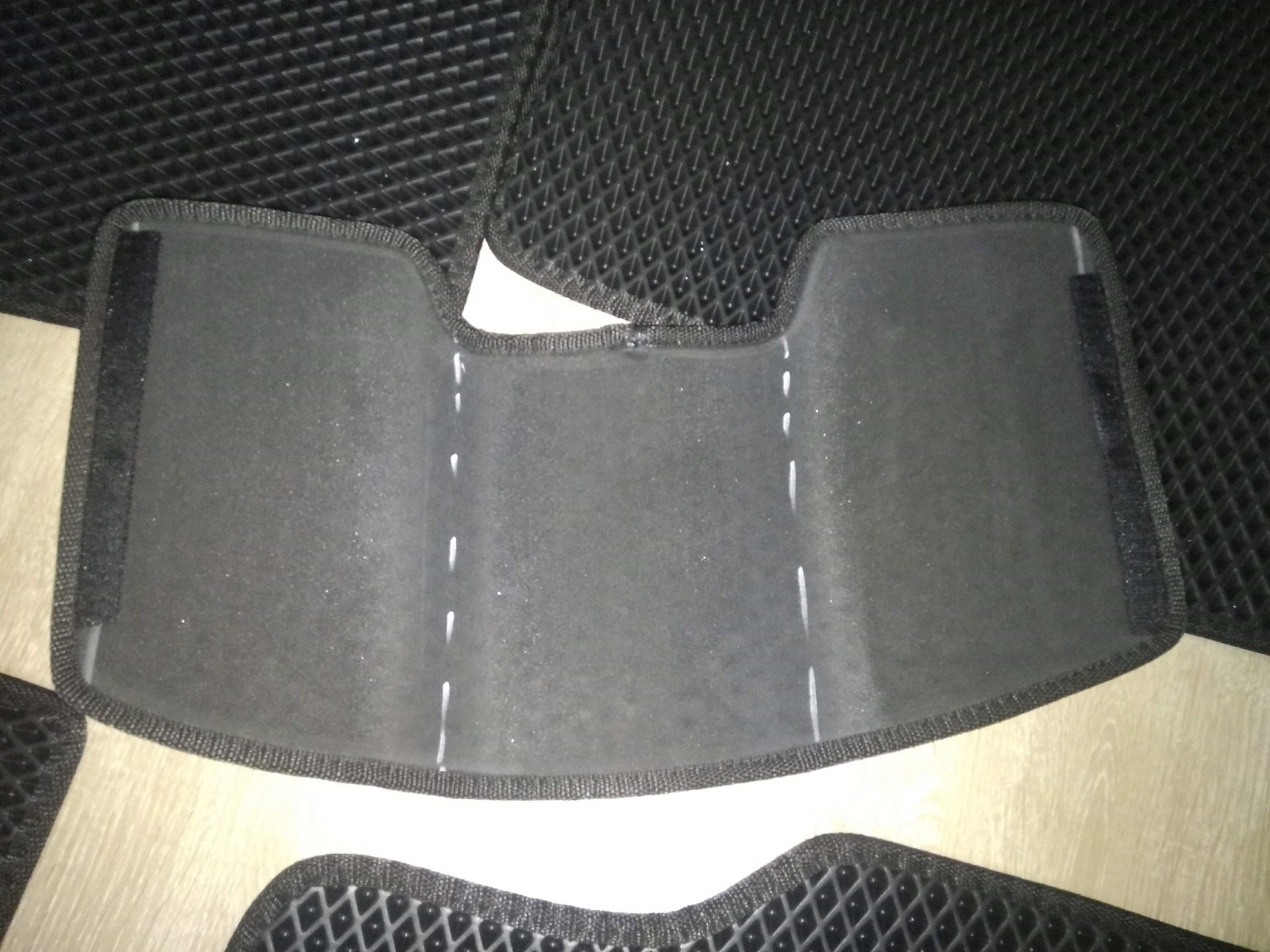 Встали визуально хорошо. Пока не понятно на счет пассажирского коврика, примет ли форму пола коврик или нет, т.к. под торпедо пол не плоский. И накладочка — "перемычка" на центральный тоннель не подошла :( лекало чуть шире реального расстояния и липучки что пришиты к ней, никак не хотят цепляться за ворс пола, хотя к родным коврикам прилипает хорошо.