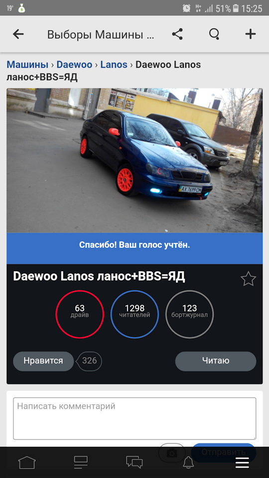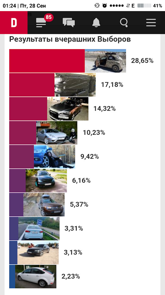 Проснулся и увидел что моя машинка в первые на выборах . Приятная неожиданность )