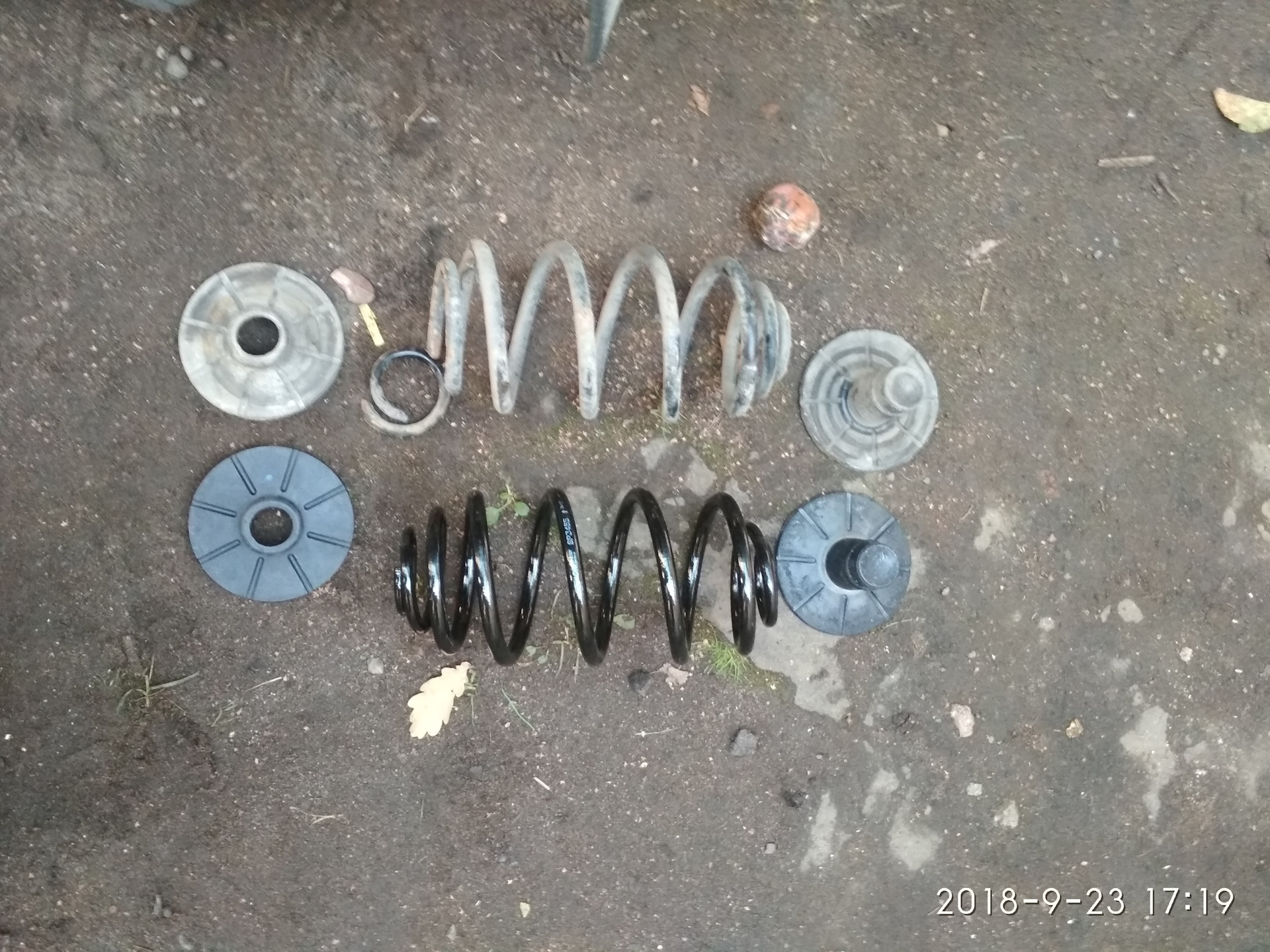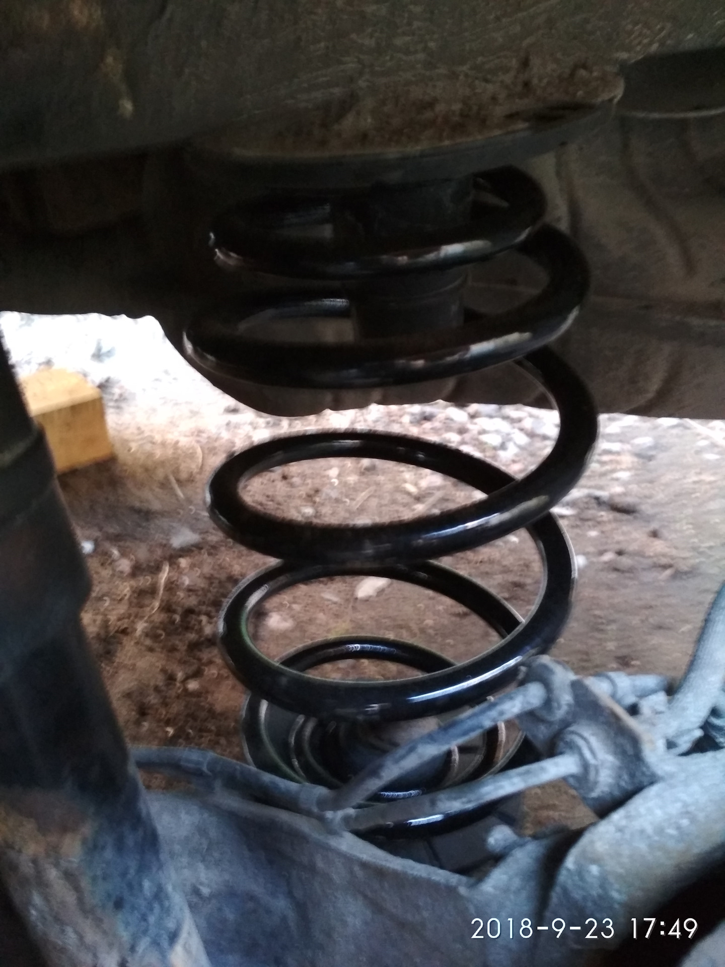 Отбойники и проставки, как мне кажется, тоже лишними оказались, старые вполне рабочими выглядели. В общем, как и рычаги, старые резинки сохранил. Дальше было немного возни с установкой амортизатора на место, тоже бутылочный домкрат помог.