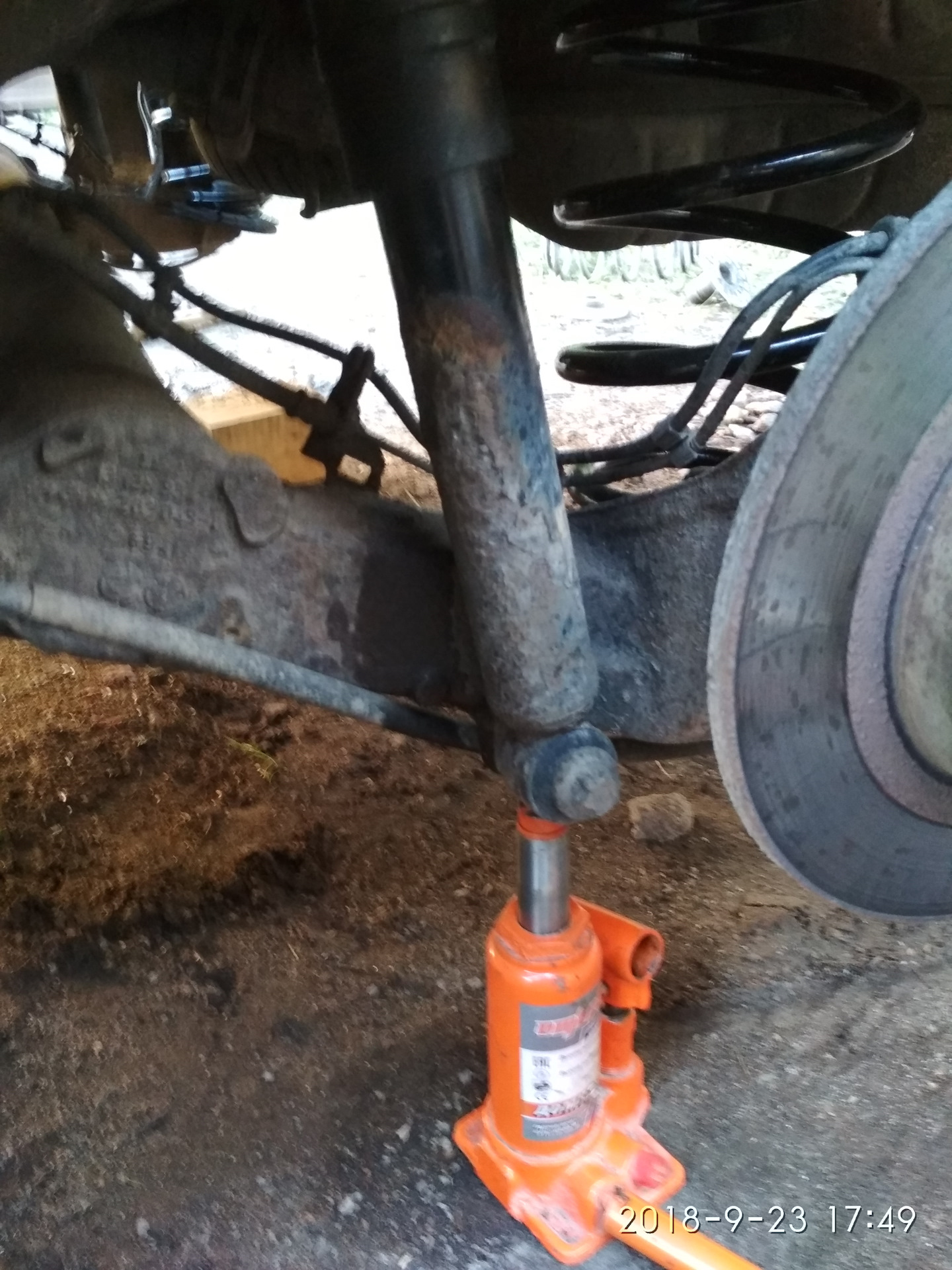 Здесь все пошло совсем прытко: поднял зад с обеих сторон, колесья скинул, болты амортизаторов открутил.