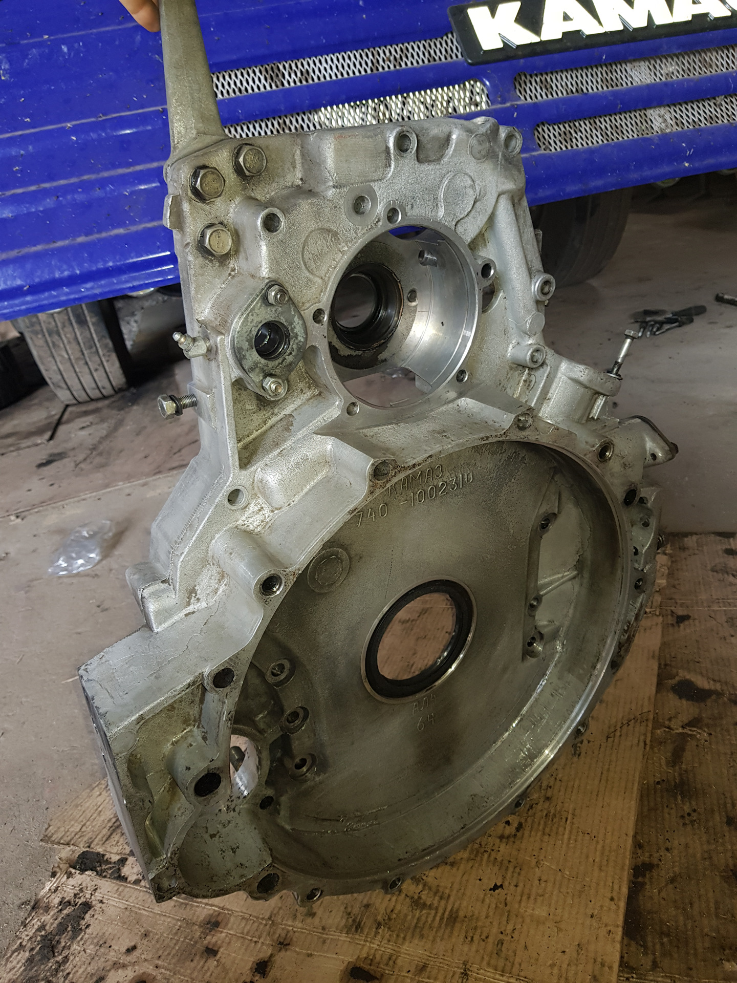 Короче приехал на загрузку. Не обротив внимания на камаз, ушел на весовую, потом подошел к камазу а у меня лужа масла и текет ручейком! Осмотрел все, оказалось что масло херачит из делителя со стороны корзины. Поехал домой, потом заехал на заправку прикупил масло на подлив, залил масло и потом она перестала теч хз по чему! Ну эт хорошо! Приехав домой решил все таки снять поддон посмотреть в чем проблема! Оказалось дело все в том что на Маслоотражающей шайбе оторвало колачек и через сальник пробило масло давлением!