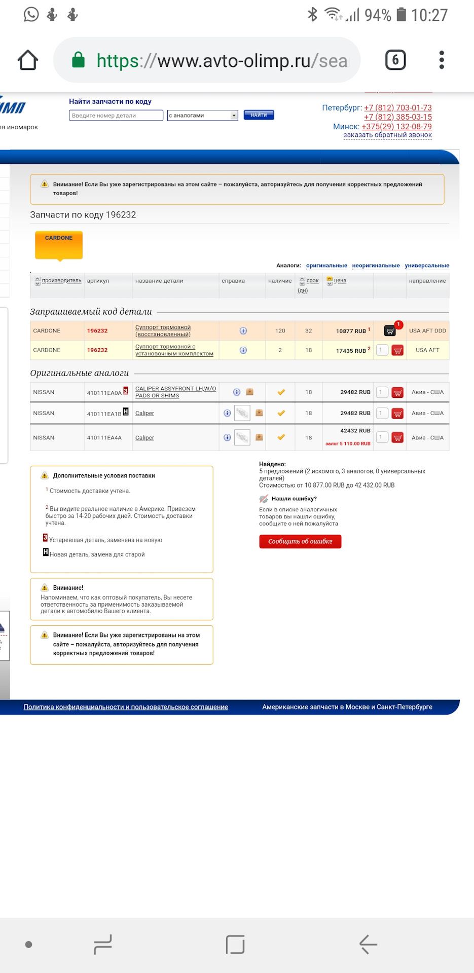Мне стало любопытно, если за контрактные суппорта с дисками сомнительного состояния просят 55 тысяч рублей, сколько же стоят новые комплекты?