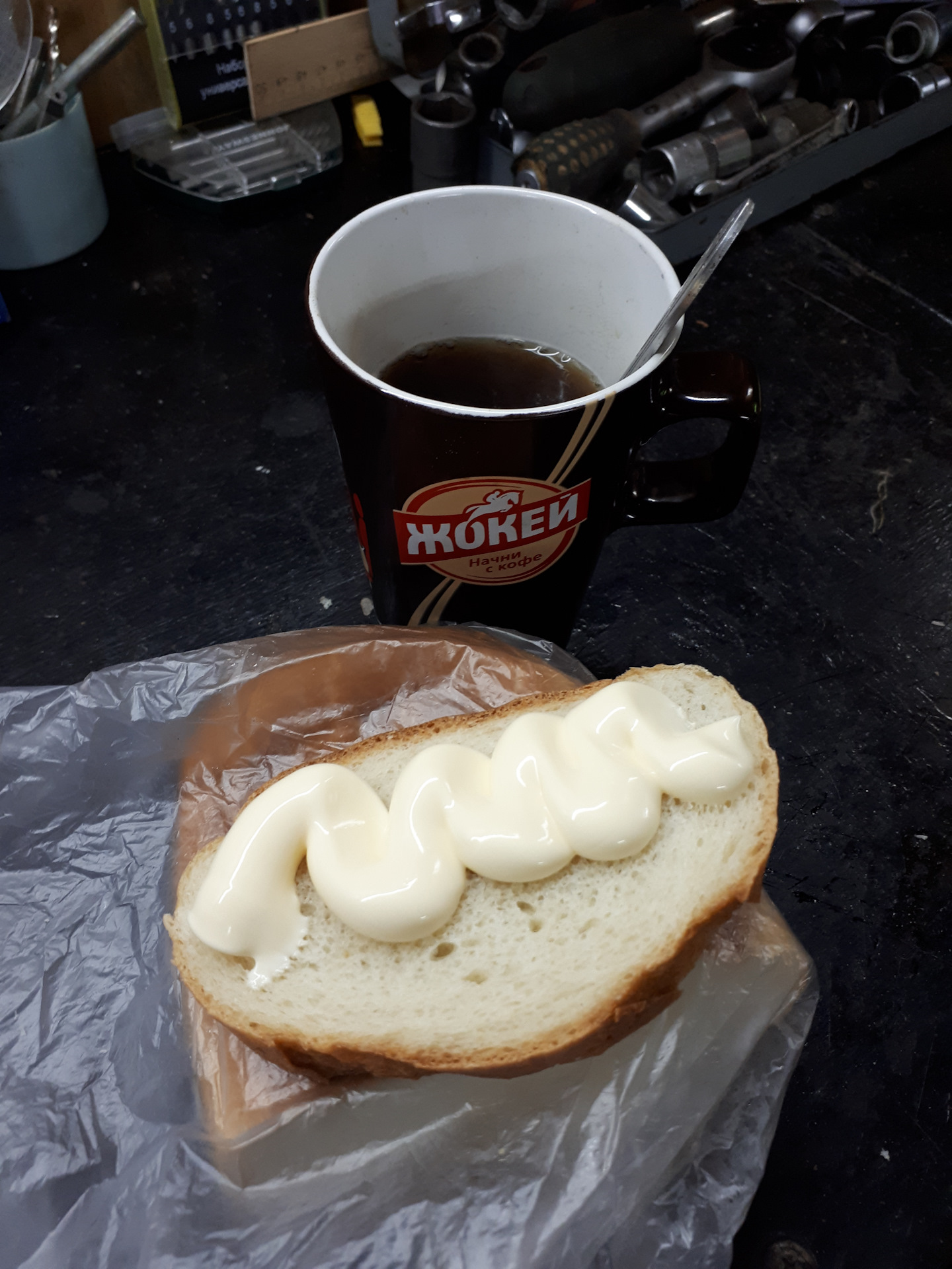 Поскольку процесс был долгий и утомительный, а кушать хочется пригодилась и помощь майонеза и советского батона.