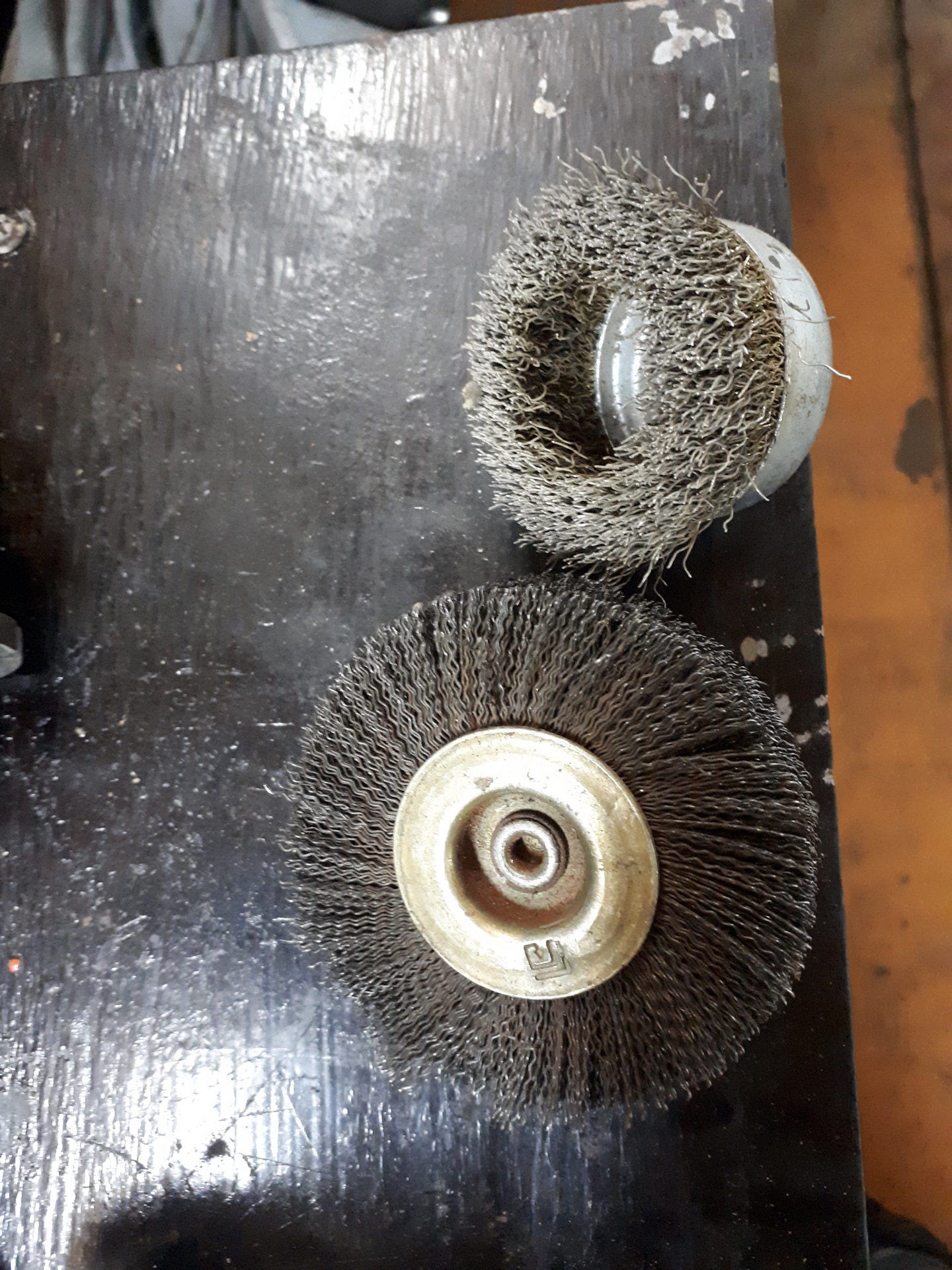 Для начала дрелью с металлическими насадками зачищаем днище от грязи и пыли.