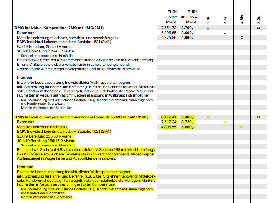 Ну и в заключении, о стоимости комплектации Maritime Edition на примере для X5.
