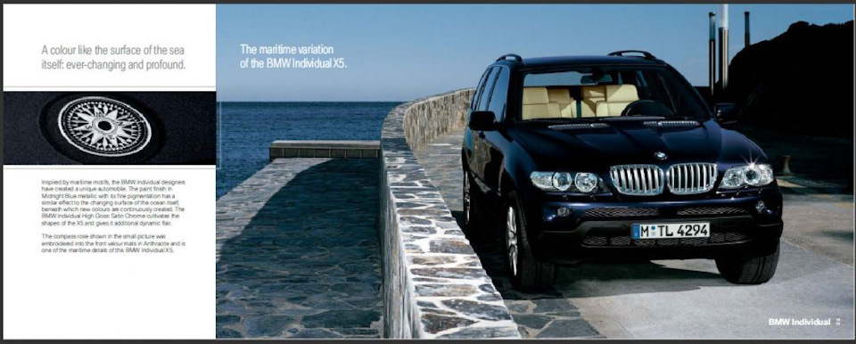 До того, как увидел фото в объявлении по продаже своего Х5, я и не подозревал о существовании у BMW пакета Maritime Edition, никогда не видел и не слышал о нем. Но "повелся" то как раз, именно на него )) Оч уж понравился мне светлый с черным салон и полосатое дерево ) Поэтому полез в "гугл", и узнал, что же это такое. Кстати, информации не так уж и много. БОльшую часть инфы нашел в этом бортовике такого же Х5, за что спасибо его автору.
