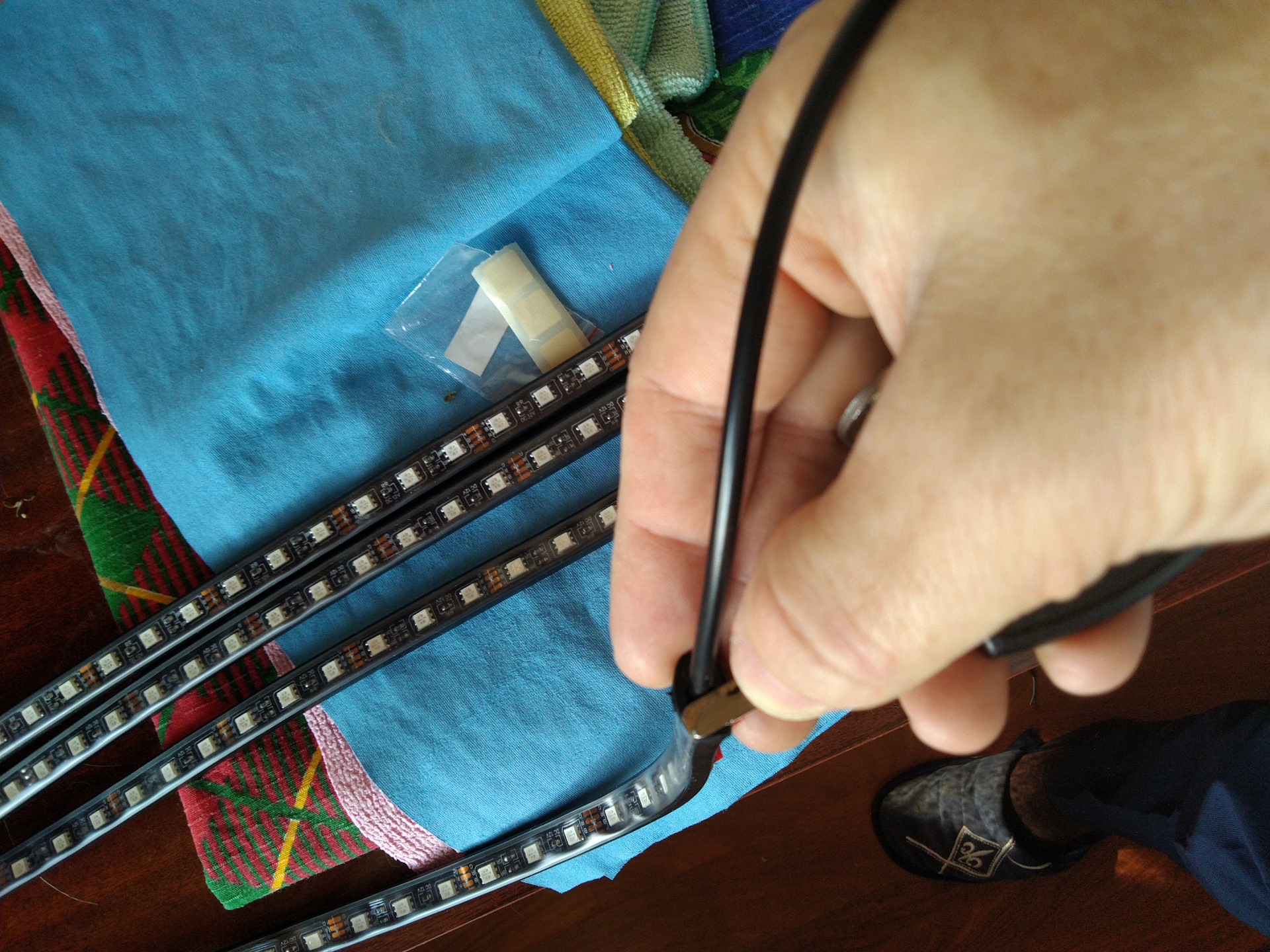 — лента диодная, в резиновом профиле, с защитой от влаги, с блоком и пультом, 1275 руб. Ранее уже писал о ней, в блоге "Плюшки на авто из Али и не только";