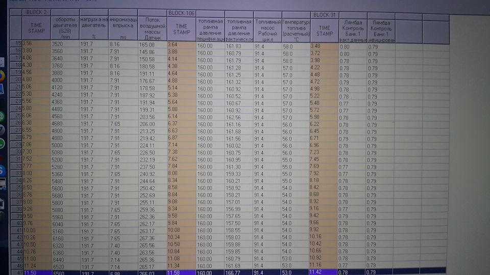 Ну да, в пике просадки топлива даже нет. Смесь тоже ровная, время впрыска бы ещё глянуть. Не снимал?
