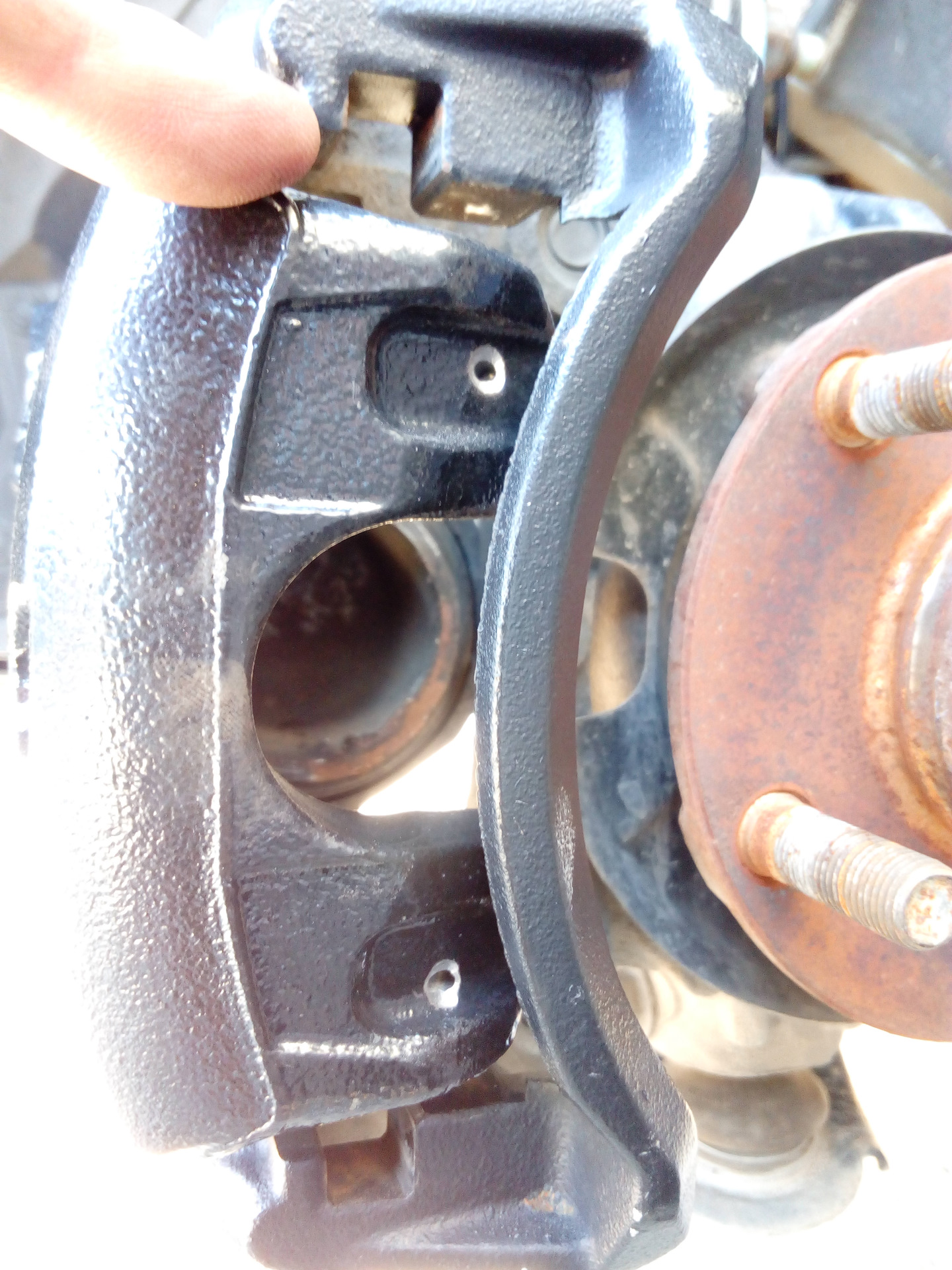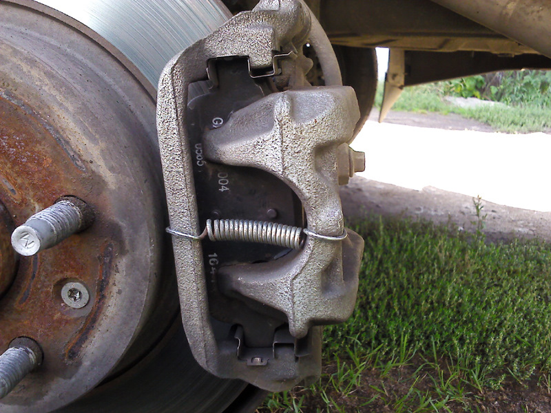 Ну да. Пока вроде работает). После первой неудачи с выбором пружин, руки уже было опустились, но решил дойти до конца). Перемещал суппорт на направляющих — по мере износа колодок пружина не должна покинуть своего места. Всё перепроверил, прежде чем за дрель браться и дырвить свои суппорта) 213 тыс уже прошли, как ни как)