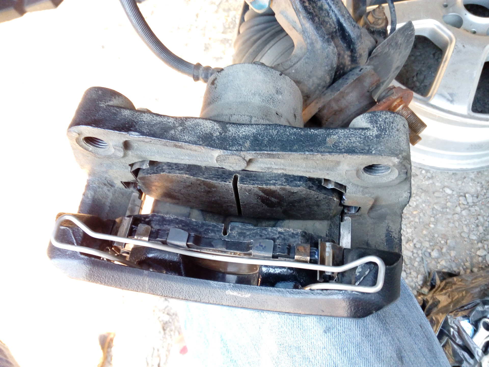 3. Замена скоб на контрактные. В прошлом году при замене тормозных дисков поставил контрактные скобы. Износ на них явно меньше и бряканье отсутствовало в течение целого года. Пока не поехал в отпуск, а там многокилометровый забег по гравийке, потом по размытой гравийке…В итоге «здравствуй, бряк». Суппорта опять стали музыкальными. Стук был неслабый, по началу даже показалось, что начали грохотать передние стойки.