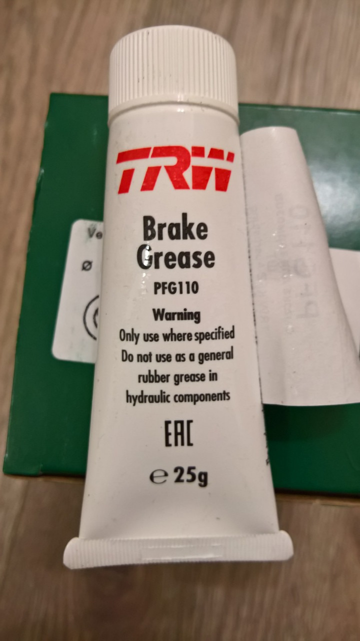 P.S. Т.к. полез ковырять суппорта, то сразу обслужил направляющие пальцы. Использовал смазку TRW PFG110. Вычистил, вымыл, вытер старую смазку и заложил свежую. На противоскрипные пластины нанес японскую смазку для тормозной системы. Покупалась ооочень давно, медная такая, на банке одни иероглифы. Но гугл-переводчик показал, что смазка действительно для тормозных систем)
