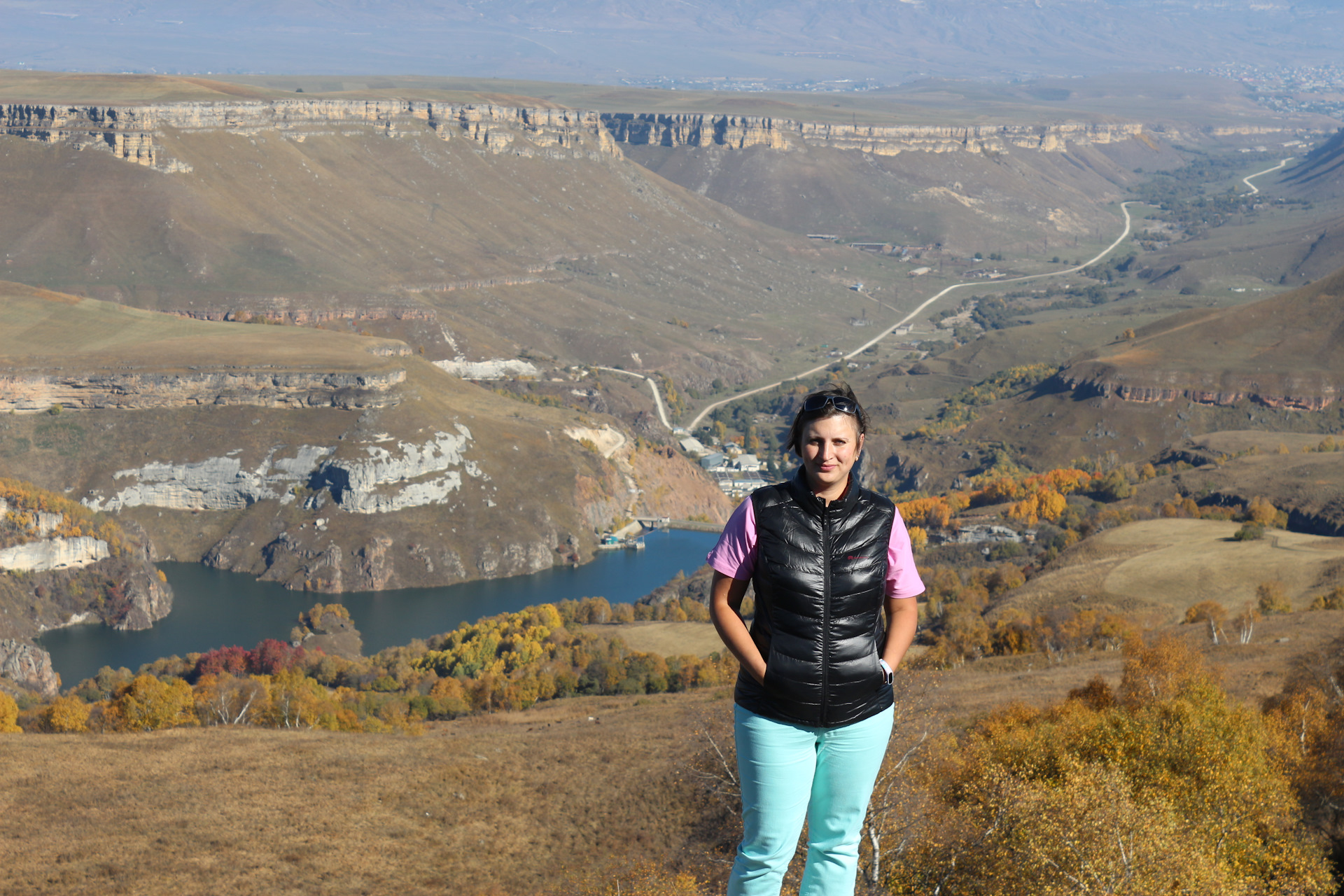 прибыли на гору Шапка. Оттуда открывается вид на Вершину Эльбруса(нам очень повезло с погодой) на Эшкаконское водохранилище, которое находится в Гришиной балке как и пещеры которые мы посетили в сентябре.