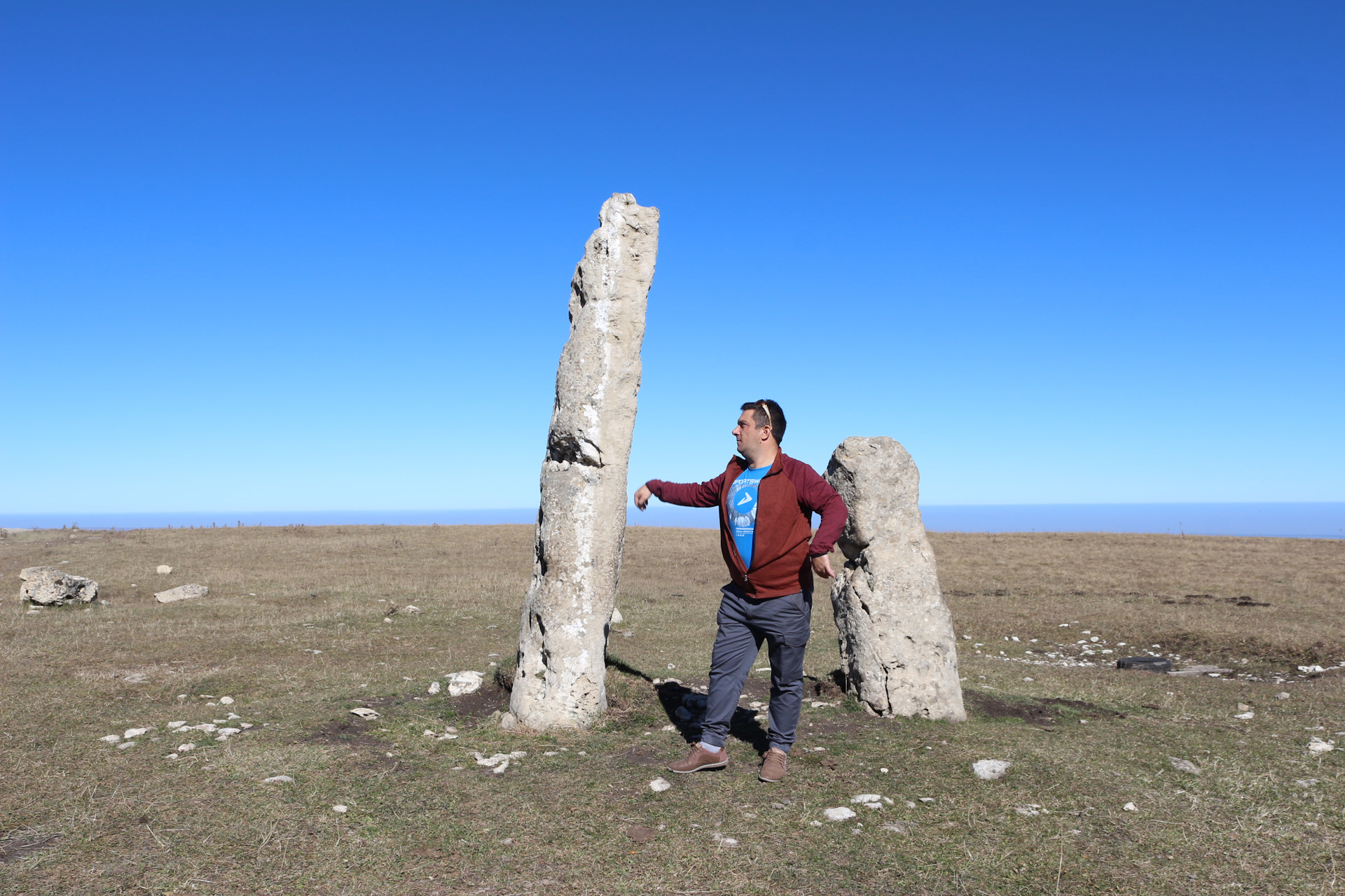 Останавливаемя возле Менгиров- Ребята видят колонны первый раз. Рассказал немного про шелковый путь и путь товаров из Индии (настроение Афигенное!)