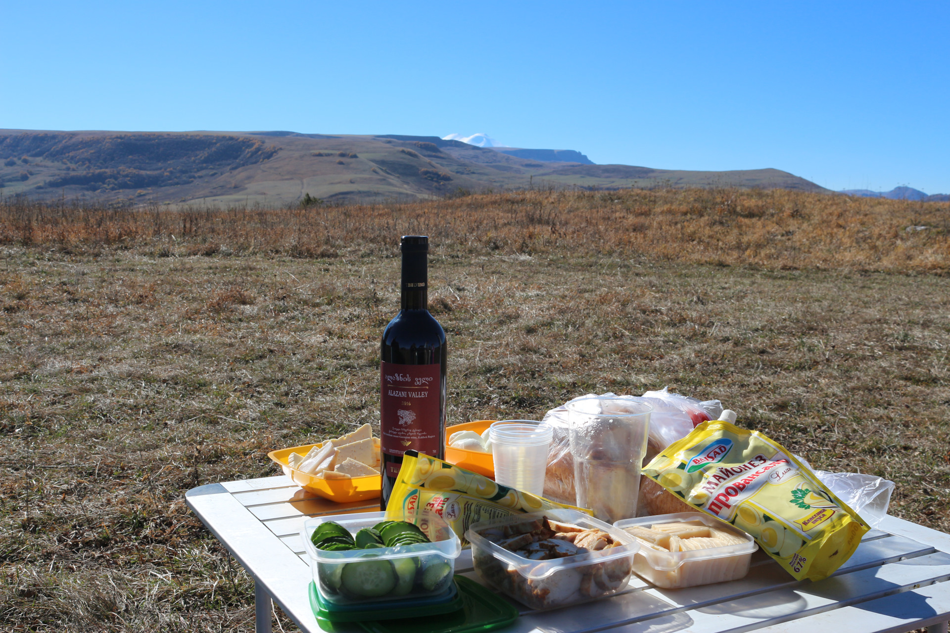 Завтракаем в живописнейшем месте, запиваем Грузинским вином, понимая что спешка ненужна т.к Эльбрус виден стартуем неспешно к Бермамыту.