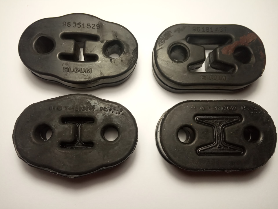Сергей, приветствую. Подскажи, пожалуйста, найти не могу, взял комплект резинок, а они по сравнению с теми что висели — дубовые и теперь при разгоне на кузове вибрация ужасная… Точно ли это резинки или от дешёвого глушителя и резонатор может быть проблема?