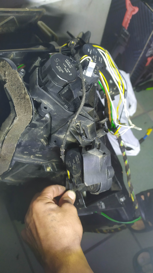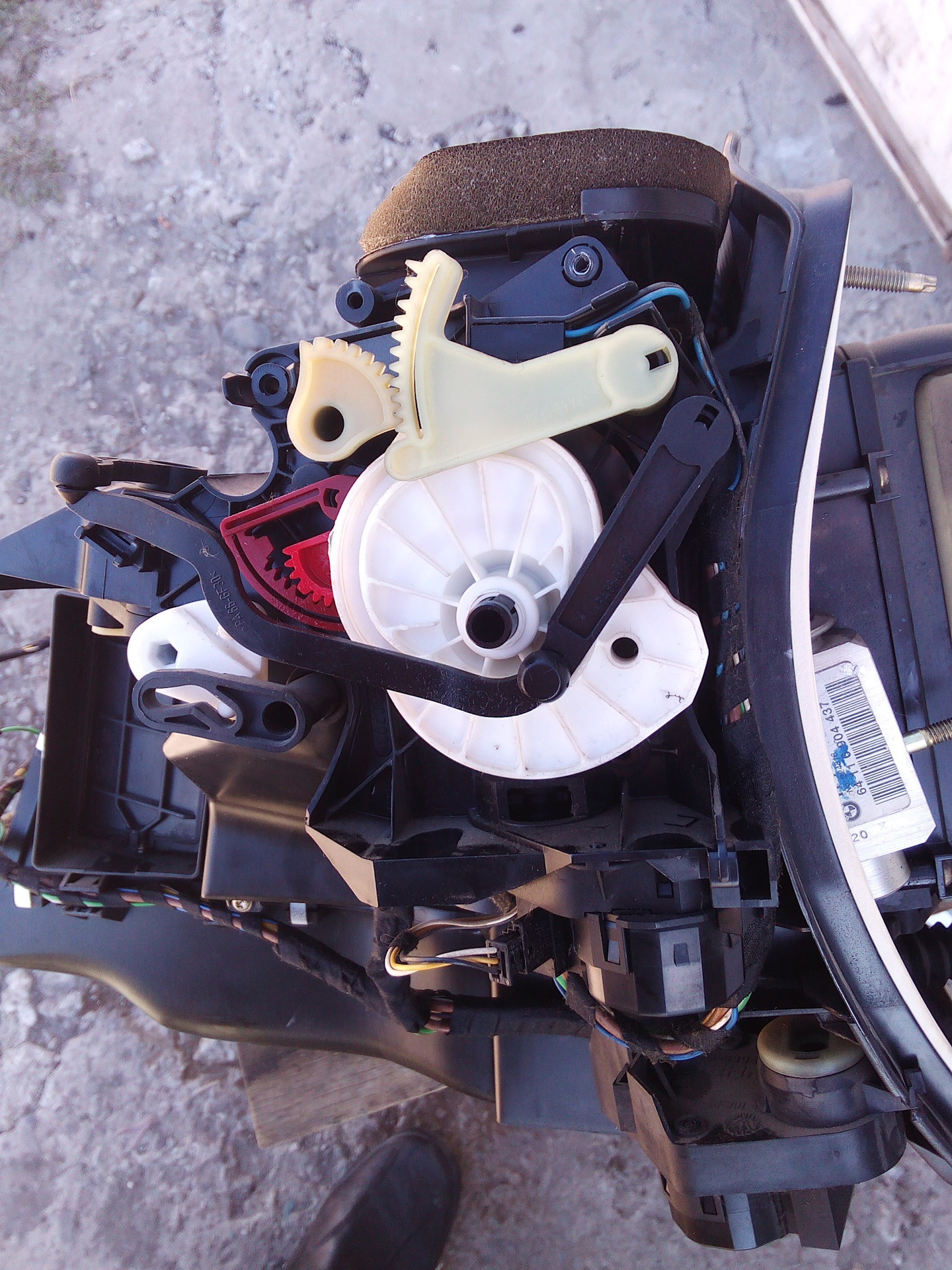 Отлаживаем эту печку в сторону. берем печку с климат-контролем. Ту все проще намного. Откручиваем площадку с приводами и нам открывается следующая картина.