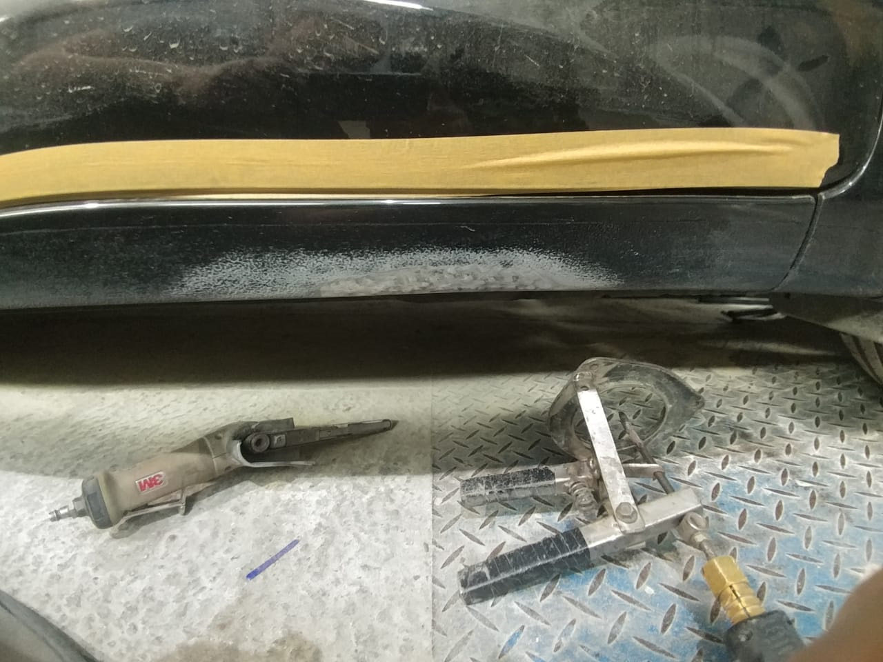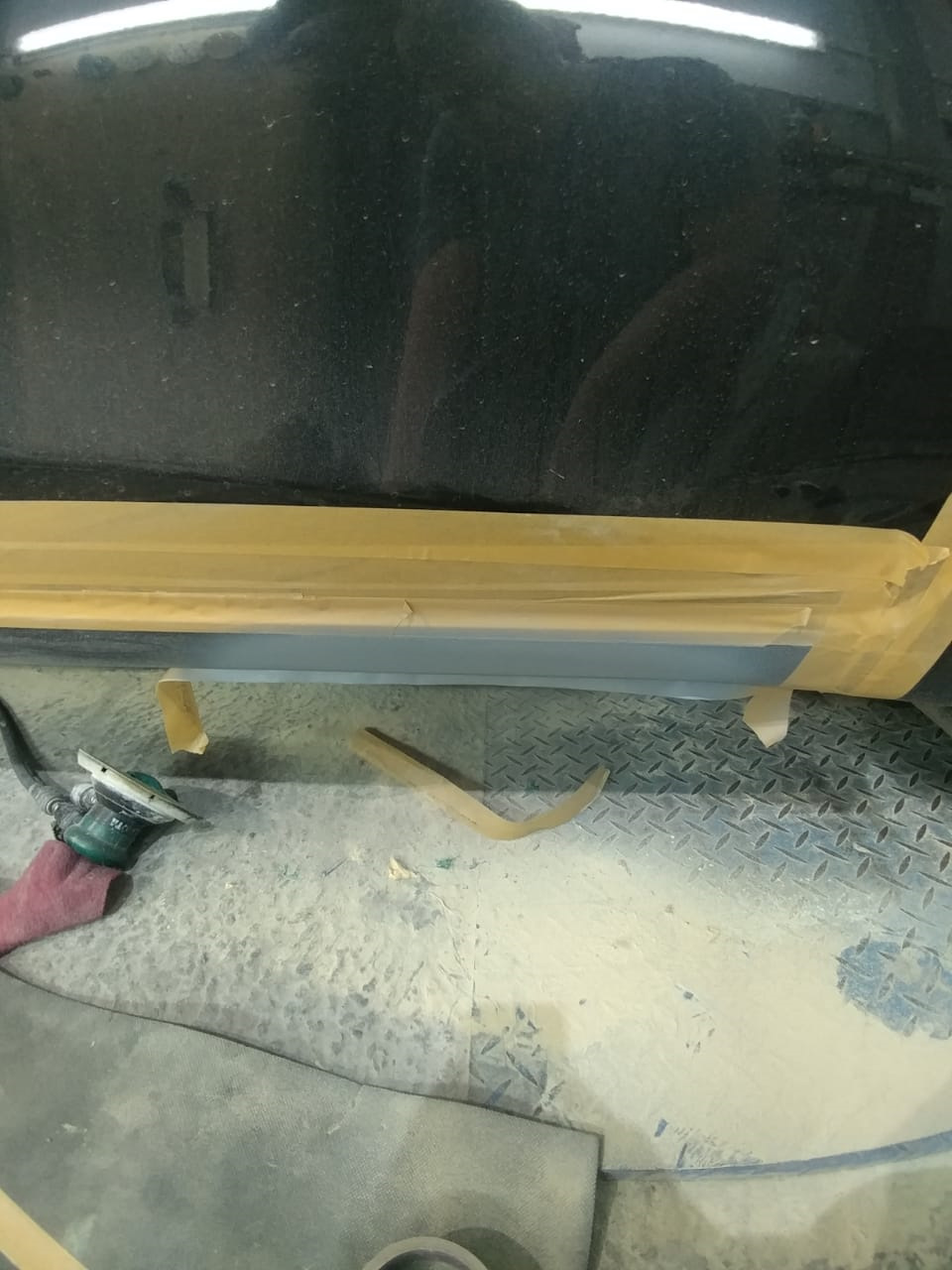 Приветствую всех! Запись короткая, малоинформативная. Для истории, так сказать. В общем как понятно из записи я всё же починил вмятину на пороге, ну не давала она мне покоя, пластиковые не захотел ставить, без покраски такое не выправляется, ну или 2-3 дырки нужно было бы сверлить в пороге и пробовать, и то гарантий что будет как было, нет. Поехал к малярам/жестянщикам, делать по классической технологии вытягивание споттером немного шпаклёвки + заодно обновил антигравий на 2х порогах и краску по линии антигравия, за почти 4 года уже начали седеть пороги, в любом случае нужно было делать, не красиво было. Не долго думая отправился уже к знакомым мне по заднему бамперу ребятам. Ценник не сказать что прям дешман, но адекватный, в одной раскрученной на Д2 конторе зарядили 13 тысяч за один порог, а я сделал за 12 оба. Ниже будет несколько фото, было/стало и процесс работы немного. В общем теперь я доволен и спокоен, чуууть досадно что на металл оказывали воздействие и рано или поздно в этом месте он загниёт, ну ничего не поделать.