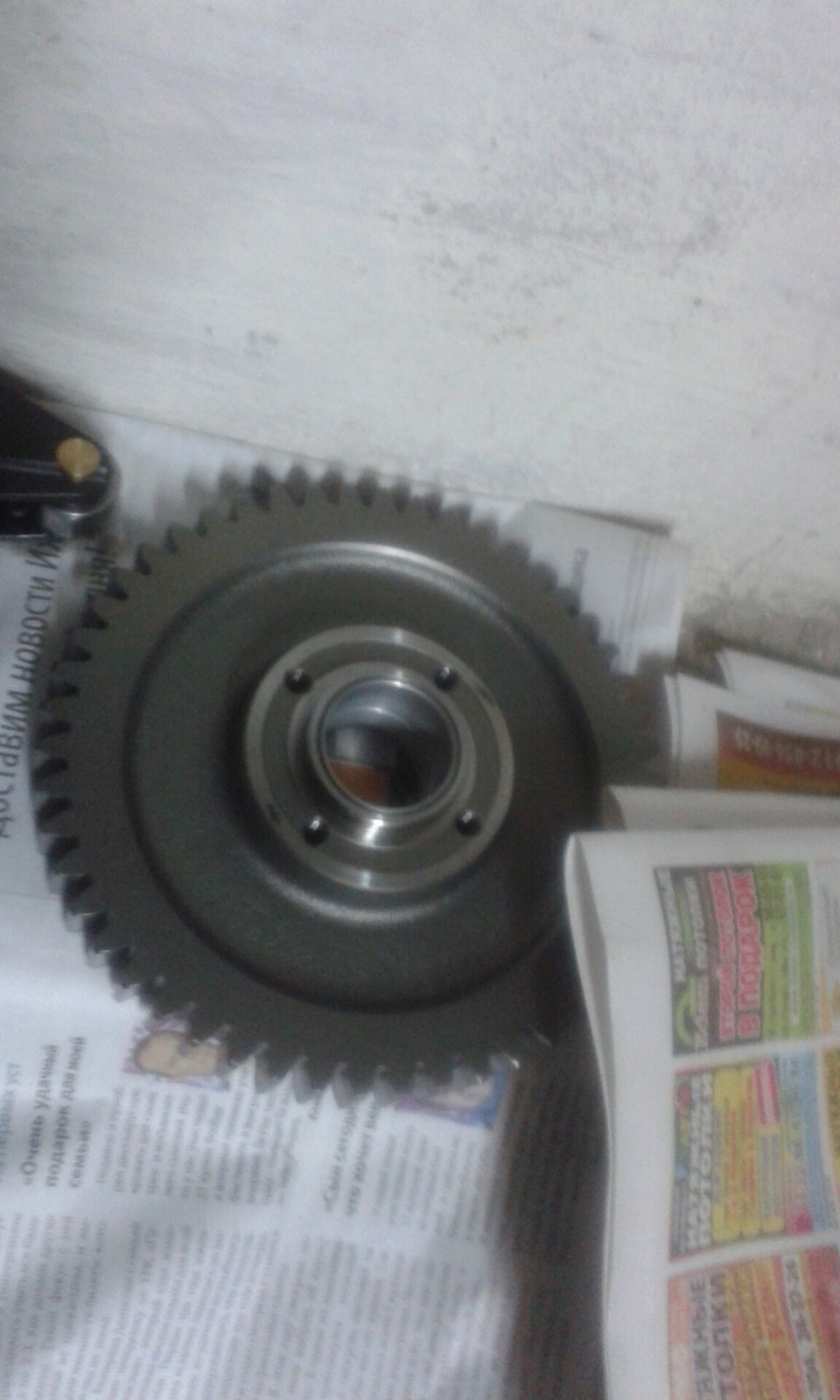Ну да ладно, з/ч куплены надо собирать. Все детали тщательно промыл в соляре, потом в бензине, протер сухой тряпочкой. Большие детали возил на мойку. Установил КВ в новый блок, а он там вращается от руки с небольшим усилием. Возникли сомнения в пригодности вала. Поползал по форумам, поспрашивал и на драйве, вроде не критичный износ. При сборке поршня и шатуна так же возникли вопросы, поршневой палец в поршень входит с натягом а в шатун свободно, видать даже в новые шатуны палец входит свободно, это я потом вычитал. Далее установлен ГБЦ, предварительно поверхности блока и ГБЦ протер мелкой нождачкой потом обесжирил ацетоном (начитан про газы в расширительный бачек). Потом установил на место переднюю крышку с насосом. Насос так же разбирал на наличие задиров, оказался в норме ничего ненормального не обнаружил. Промыл, обесжирил, залил масло для сборки и собрал. Следуущая деталь для установки — задний картер распределительных шестерен. Прокладки на ней нет, мажем герметиком и ставим на место. По выставленным меткам при вмт 1го цилиндра все закрепляем. Направляющие и цепь при этом на месте.
