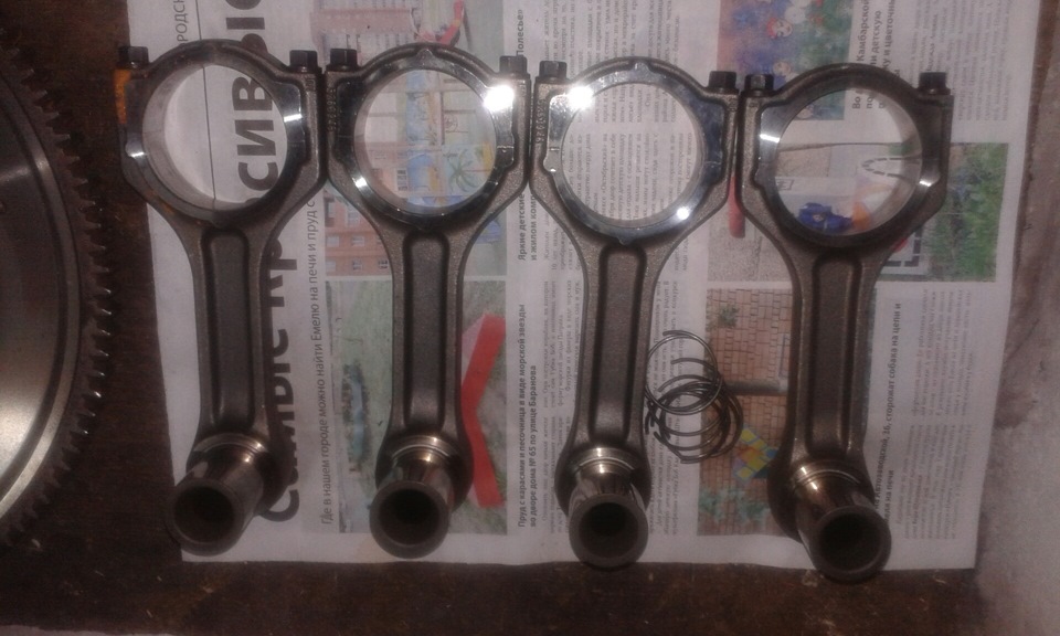 Долго бороздил пространства инета в поисках качественных запчастей. Первое что потребуется — новый блок цилиндров, либо гильзовка старого. Т.к. авто делается для себя решил не экономить. Куплен новый блок, поршня, кольца, вкладыши, прокладка ГБЦ, сальники передний/задний, масло шел римула 10в-40 20л. масло для сборки двигателя "ультра слик". Последняя весч очень, считаю, полезная! между пальцами рук тянется сантиметров 30, как "сопля". Пришлось еще купить ключ динамометрический. На все про все ушло тыщ 75 рубликов. Качество поршней, вкладышей и прокладки ГБЦ фирмы "tombow" вызывает вопрос, хотя на внешний вид не к чему придраться, нашему автопрому еще надо поработать до таково уровня. Вычитал на одном из форумов что оригинальная прокладка ГБЦ при сгибании востанавливает свою форму, а эта тамбов остается загнутой при сгибании, проверил так и есть. Сравнив вкладыши снятые с движка и купленные накаких отличий не нашол. Кольца похожи на оригинал.