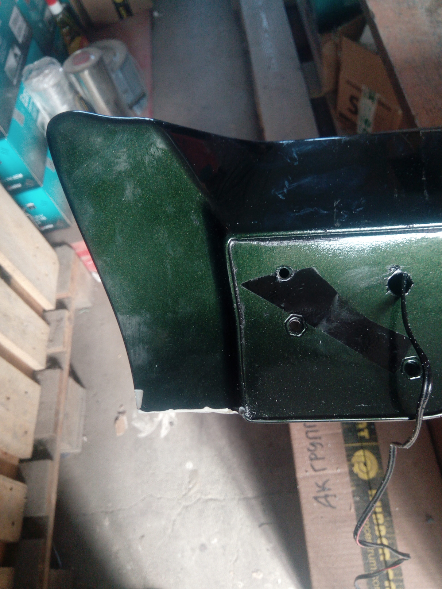 Первый спойлер мне достался на халяву.)) Был успешно покрашен, притулен на дверь. Вроде не плохо получилось. Ну а дальше "Я У МАМЫ РУКОЖОП"… В общем он успешно упал на землю…))))