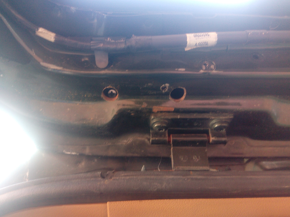 Единственное — это пришлось сверлить насквозь верхнюю часть двери. Что бы можно было прикрутить спойлер на болты.