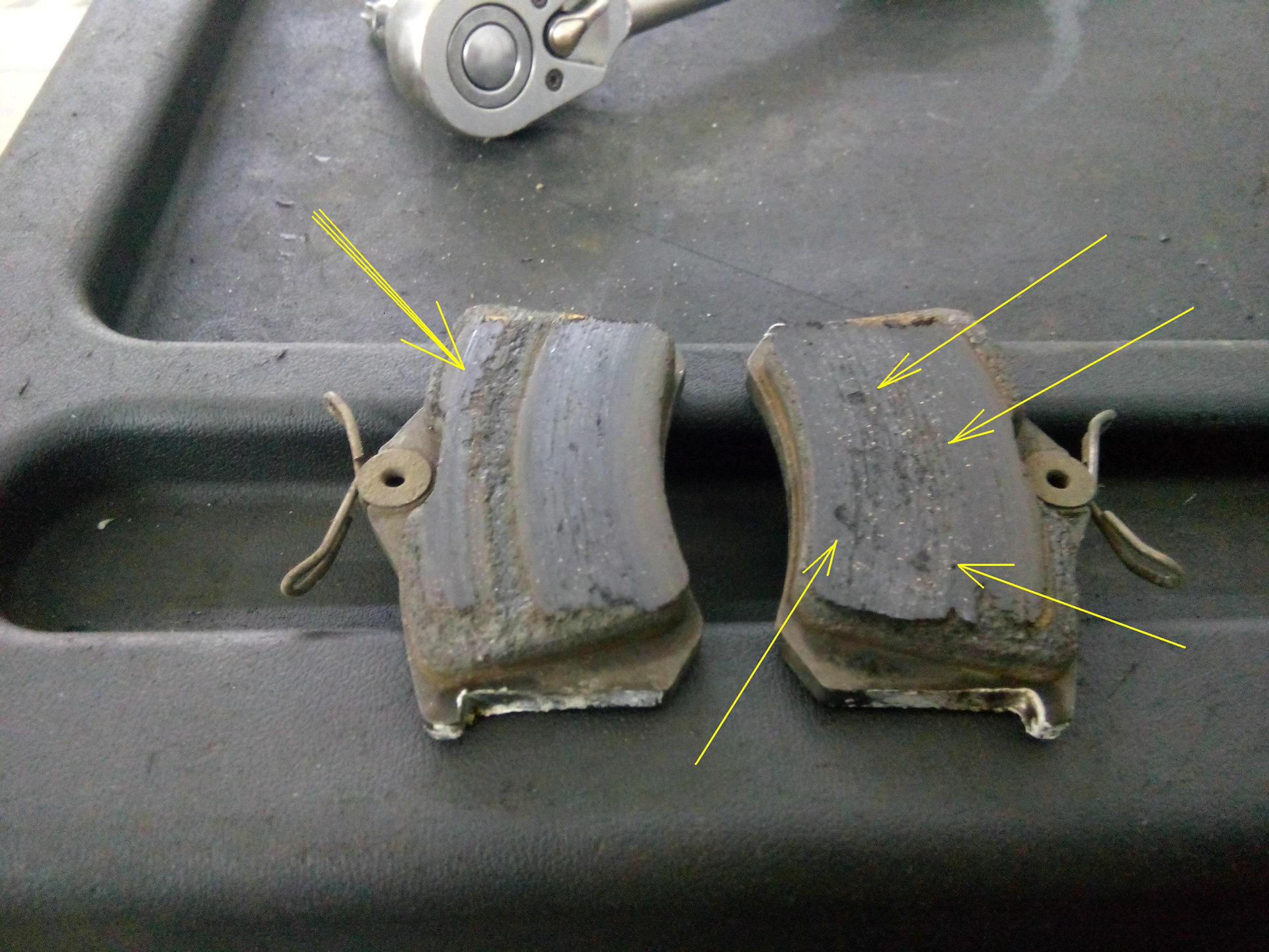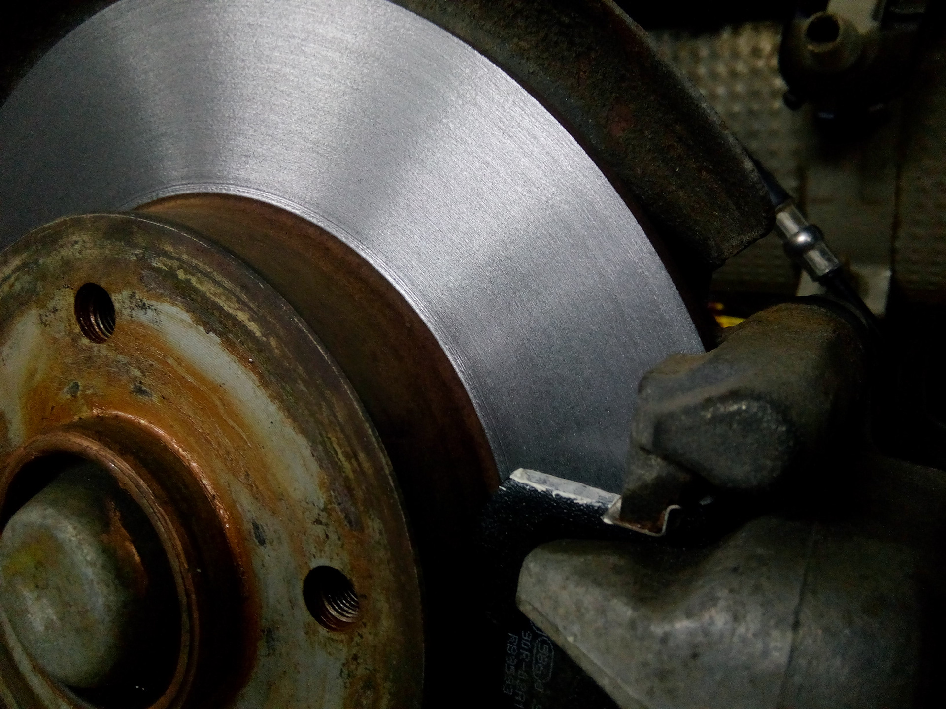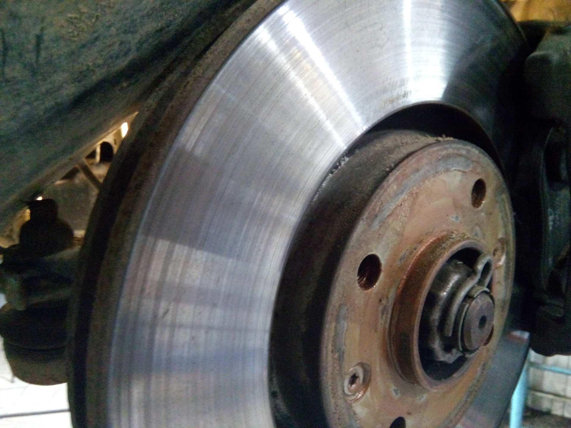 А вот задняя ось… На левом диске обнаружилась не сточенная полоса.