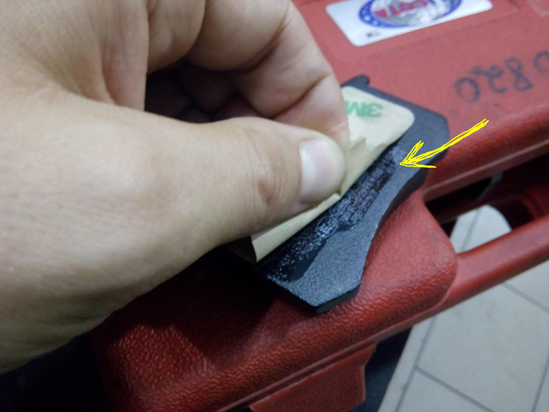 Причина в тормозной колодке, как будто часть рабочего материала была вырвана.