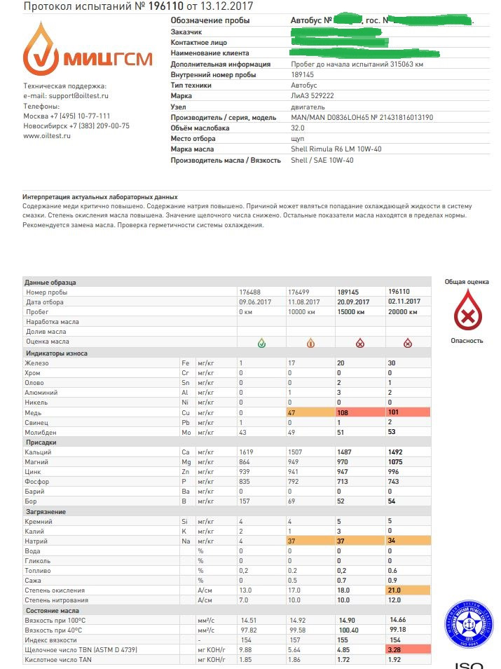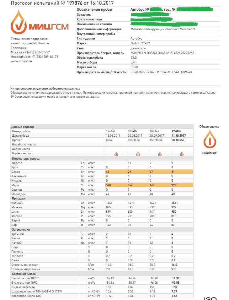 Пример масла с "достаточно присадок содержащихся в маслах."