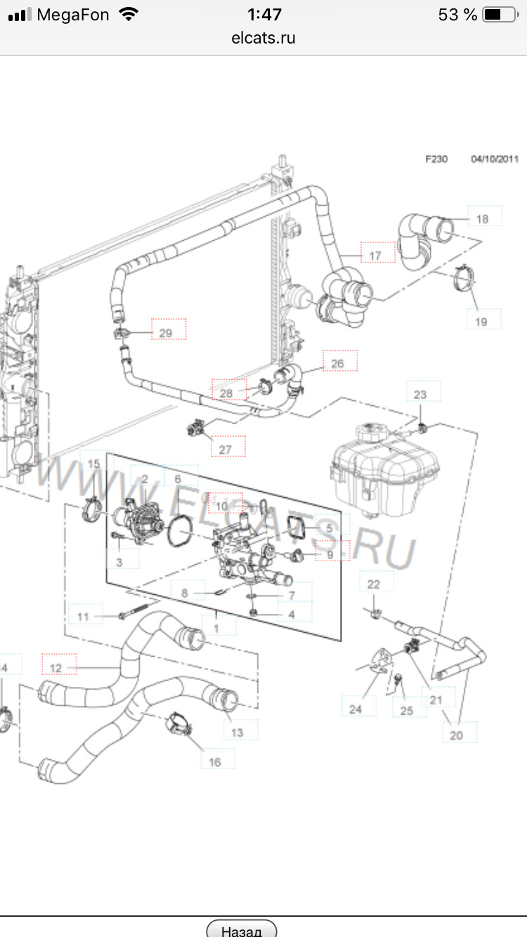 Вот список почему течи были! Термостат — замена. Крышка — замена. Далее поставили прокладку на перекос… — замена. Потом нашли трещину в корпусе — замена. Когда ставили, заметили что датчик подтекал… Нашёл артикулы, завтра замена. Думаю на этот раз больше не потечёт :)