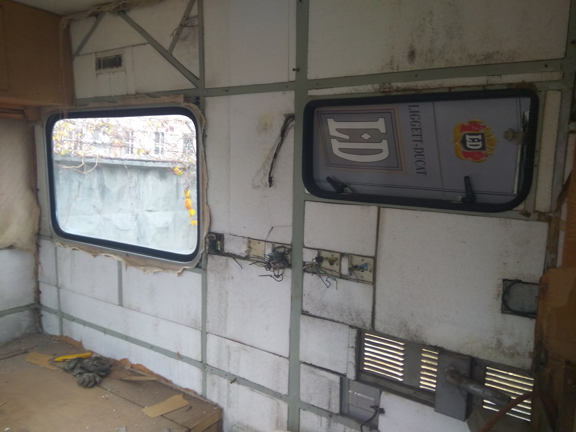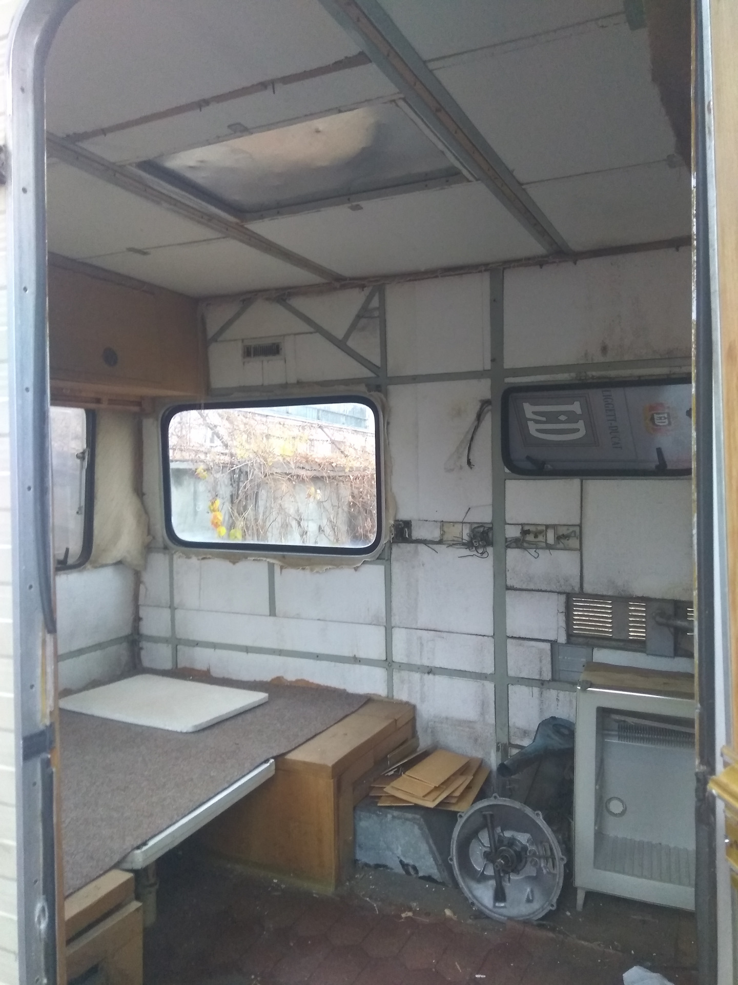 Свой воскресный день я и пёс Тотошка посвятили дальнейшей разборке былого великолепия убранства кунга. Был демонтирован кухонный блок, который ценности уже не представляет и его Чистейшество Мойдодыр, умывальников Начальник и мочалок Командир, а также оббивка стен и потолка.