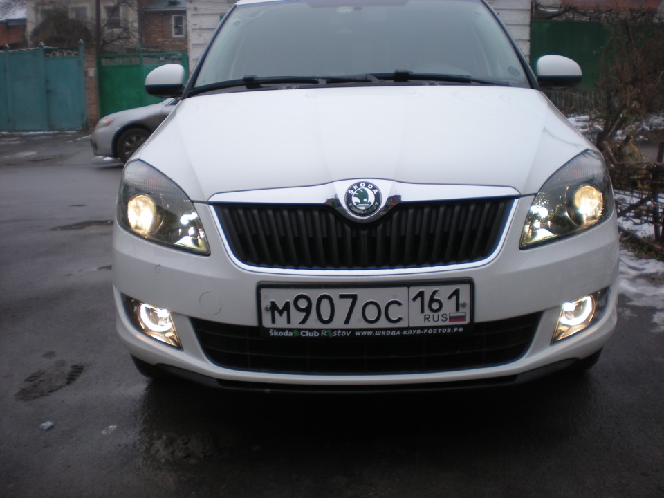 На Фабии 2 нет ксенона ни в одной комплектации, включая Монте Карло и РС. На масках линз этих фар имеется надпись "bi-halogen".