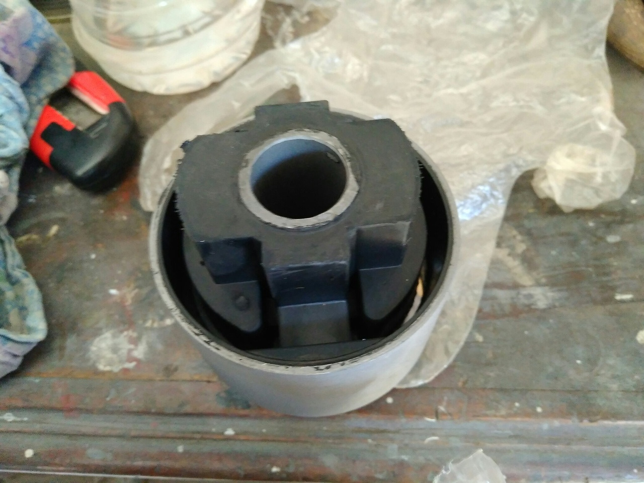 Обращу внимание, что съемника у меня нет. Выбил старый сайлентблок, запрессовывал новый тисками.