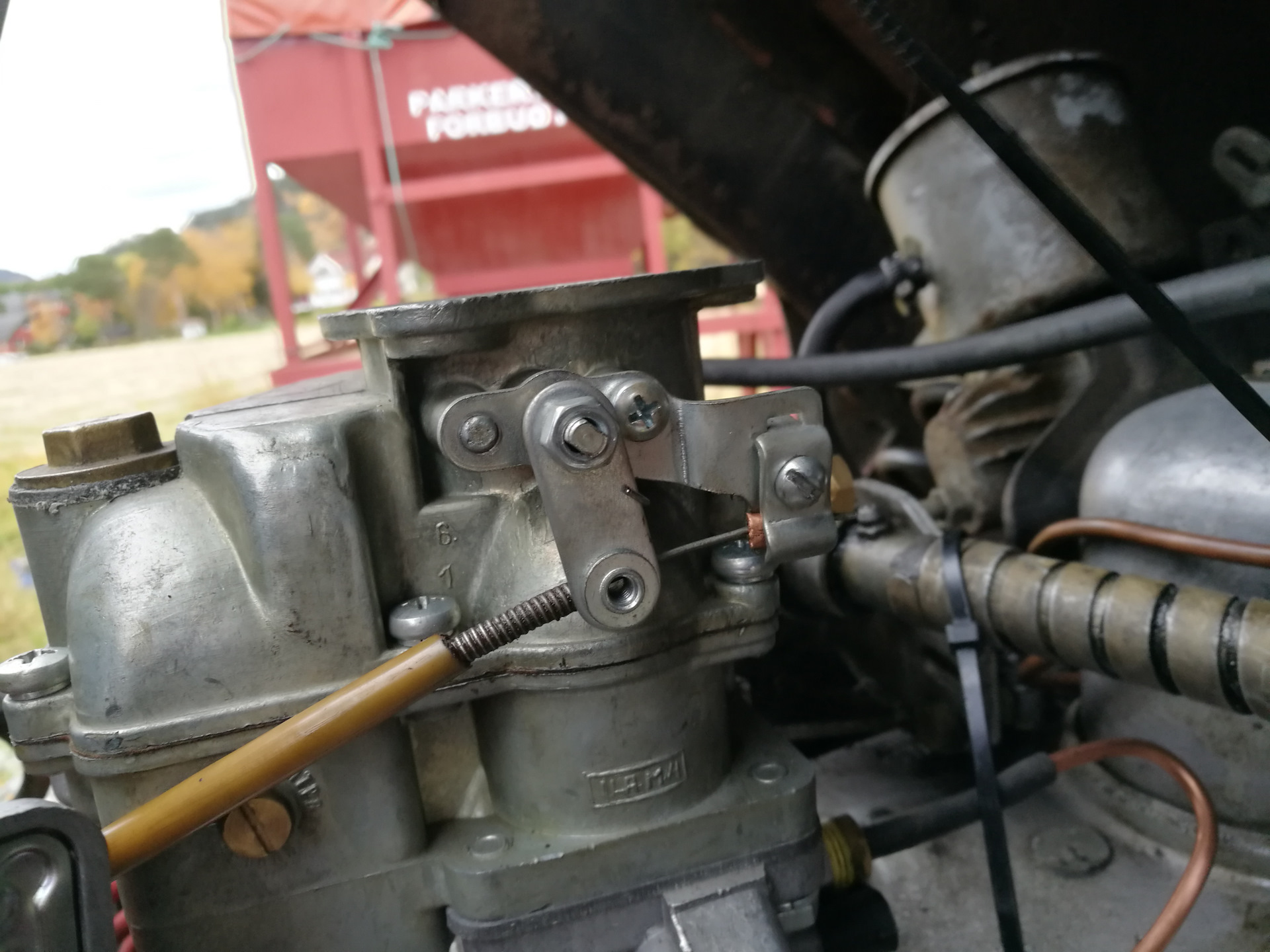 Обязательно возникнет проблема с приводом подсоса. Многие забивают и вообще не подключают его, многие ставят длинный тросик. Я пошел другим путем. Карбюратор позволяет переворачивать держатель тросика привода. Я развернул держатель и закрепил тросик таким образом: