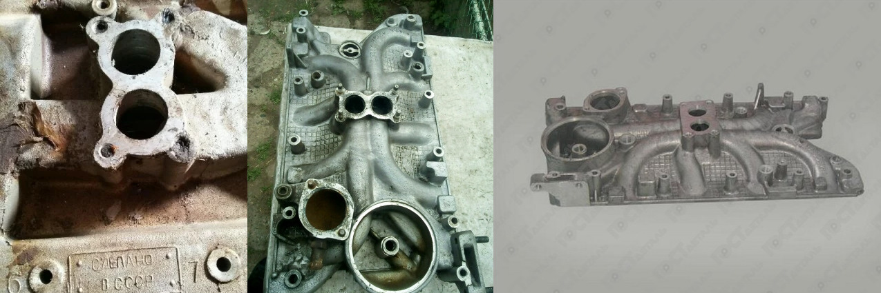 У меня все 4 впускных коллектора — 3 старого и один нового образца — с "очками". В таком случае перепускной канал не закрыт площадкой карбюратора и будет обильный подсос воздуха во впуск. Есть два варианта решения проблемы — эпокситная смола и алюминиевые опилки, либо проставка. Я на ГАЗ-66 пошел по пути установки проставки (здесь больше пространства под капотом). Для Волги буду заклеивать канал, чтобы сэкономить по высоте.