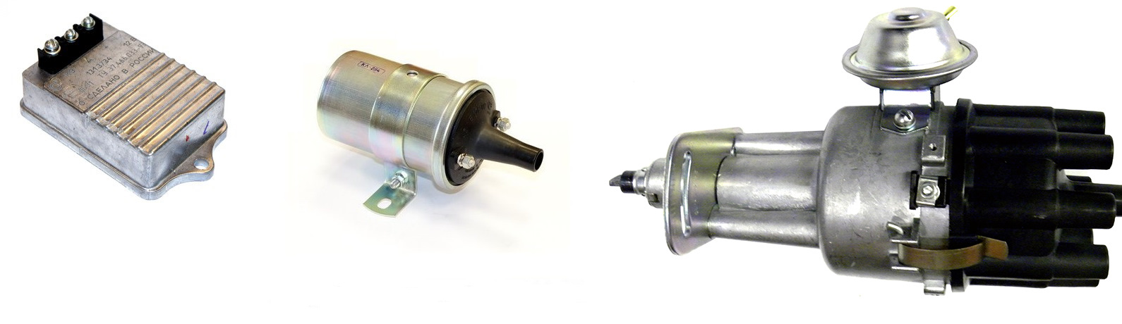 Здесь минимальный необходимый комплект — бесконтактное зажигание от компании СОАТЭ. Коммутатор 131.3734, катушка Б-116-02 и распределитель, он же индуктивный трамблер — 24.3706-10 от того же СОАТЭ.
