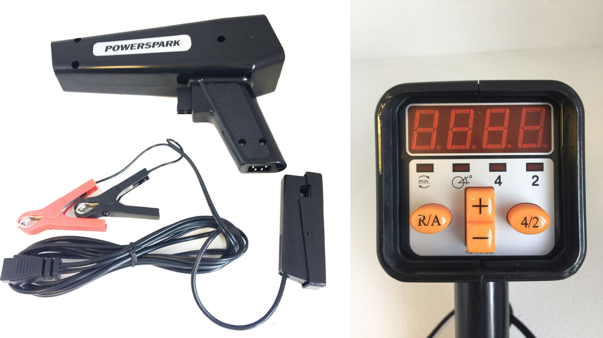 Я видел много всяких вариантов, вплоть до установки "Январей" от впрысковых моторов. Это, как по мне, передоз. Можно конечно заколхозить и датчики Холла от тазика, но я не вижу в этом особого смысла. Штатное бесконтактное зажигание дает вполне отличный результат во всем рабочем диапазоне оборотов. Замер параметров зажигания показывает погрешность искрообразования 1-2 градуса по коленчатому валу, что вполне допустимо. Для отстройки параметров зажигания был приобретен стробоскоп с функцией отстройки угла опережения, вот такой: