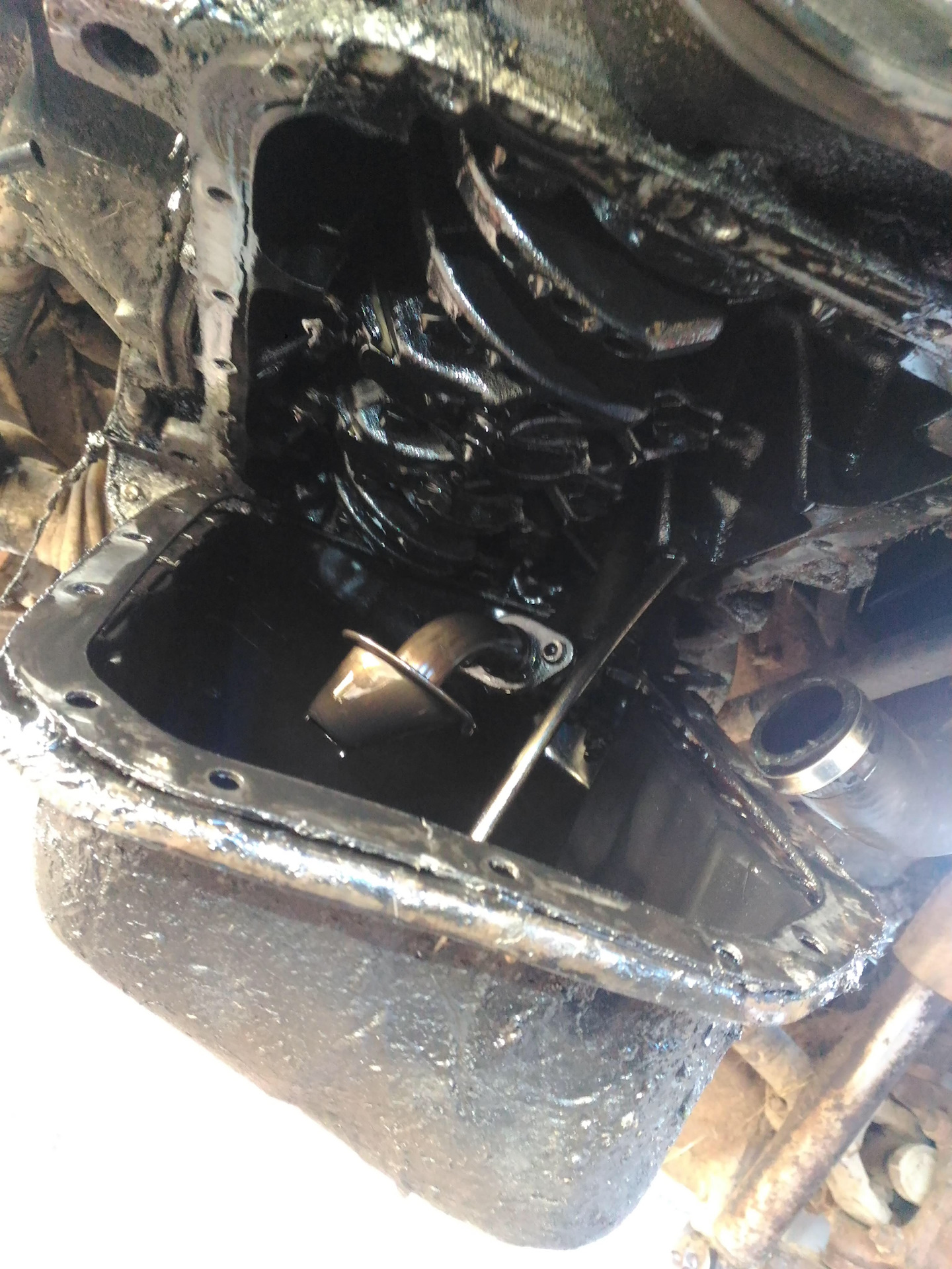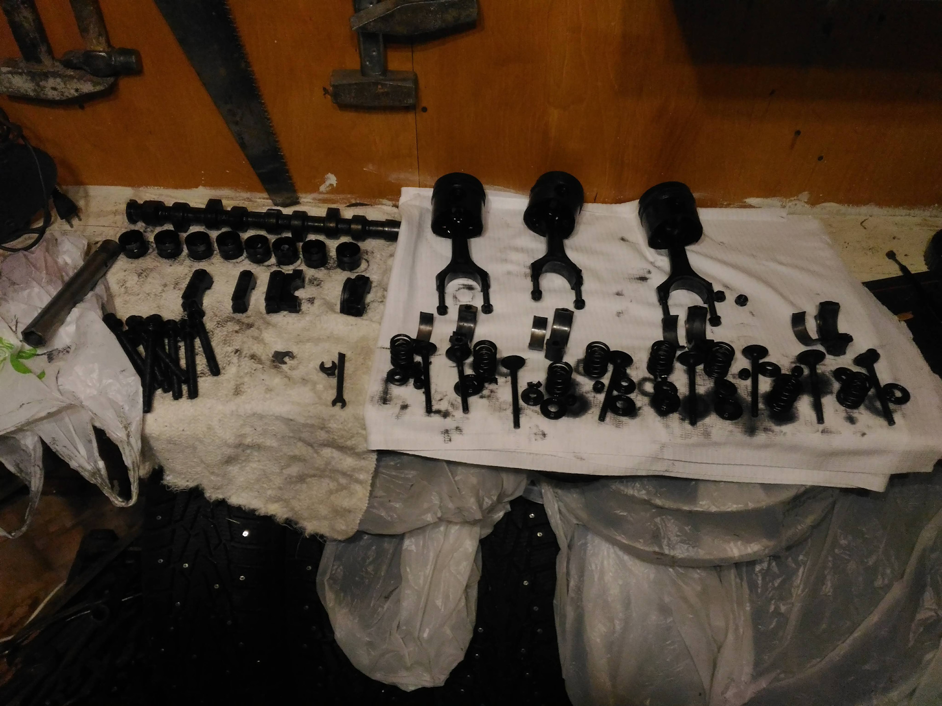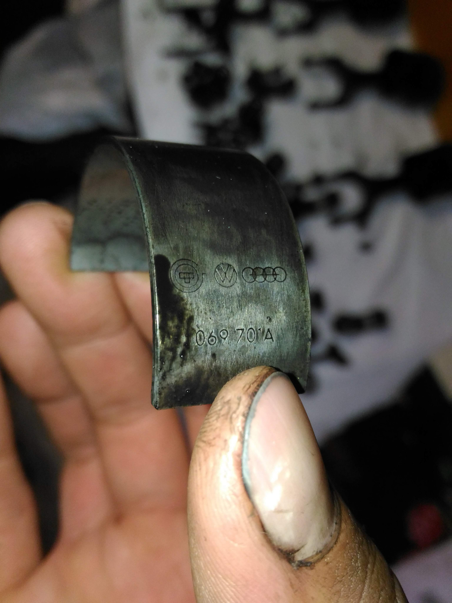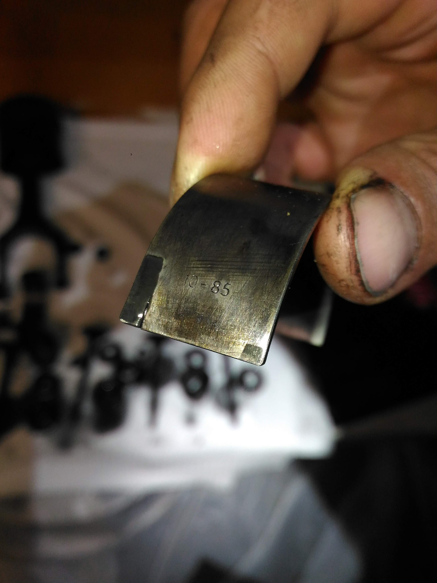 В итоге оказалось что чтоб подлезть к 3м болтам поддона нужно хорошенечко исхитриться ибо 2 из них входят в переходную плиту, а 3й с ней почти соприкосается. Мне бы тогда остановиться и начинать вытаскивать блок, но я пошел напролом. Сьездив в Истру в магазы среди прочего я купил набор накидных ключей из которых ключ на 10 я подрихтовал болгаркой. Это помогло снять болт за плитой. Замяв бортик поддона снял второй. 3й снять не вышло и варварски отогнув поддон я принялся вытаскивать поршни. 3 вытащились относительно легко, а вот на четвертый с той стороны где висит паддон я потратил пол дня. Сверху показалось первое колько, но более мне добиться не удалось. Надеюсь я шейку колена очень раздраконил от отчаяния. Очень поддон мешает. Коренные остались на там, вот вид шатунных не воодушевил. Выработка, выкрашивание и др и пр. Плюнув на это дело замерзший и грязный и пошел рассухаривать бошку. На вазовском сьемнике мелто для упора в тарелку оказалось больше чем тарелки на ваговском 1.6д, в виде переходника была использована головка на 20 из набора. Не имея должного опыта это требует некой усидчивости. Сьемник сперва постоянно слетал. Все вытащил за исключением бронзовых штуковен. Седел клапанов или как их там. Обнаружил что клапана люфтят. Насколько я понял так не должно быть. Стало быть видимо нужно както выпресовать седла и их тоже заменить. Вечером считал приблизительный прайс по деталям. Пока с номинальными размерами.
